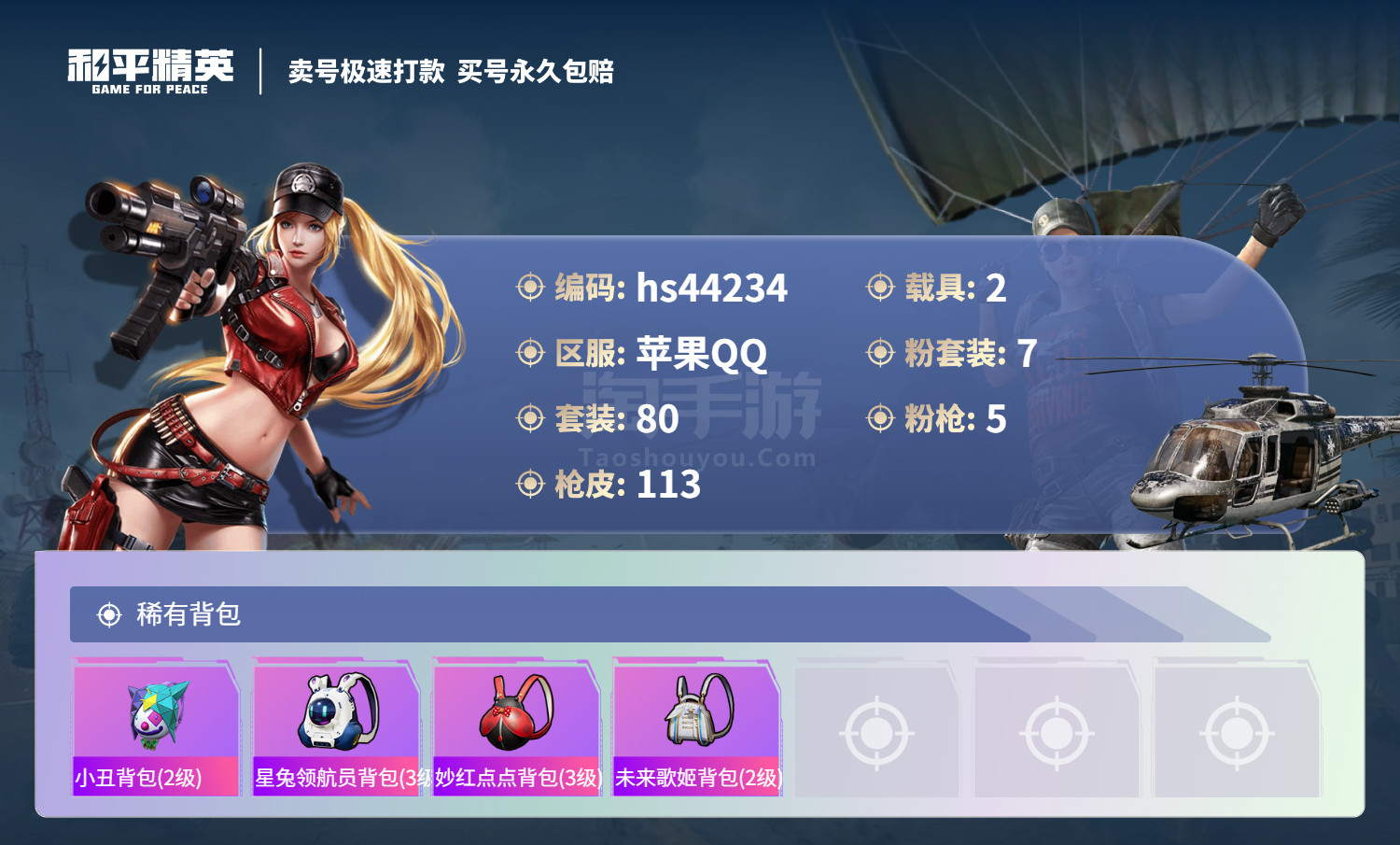 hs44234 苹果手Q-5王牌印记-7粉装-5特效枪-2载具-41978热力值-80套装-113枪