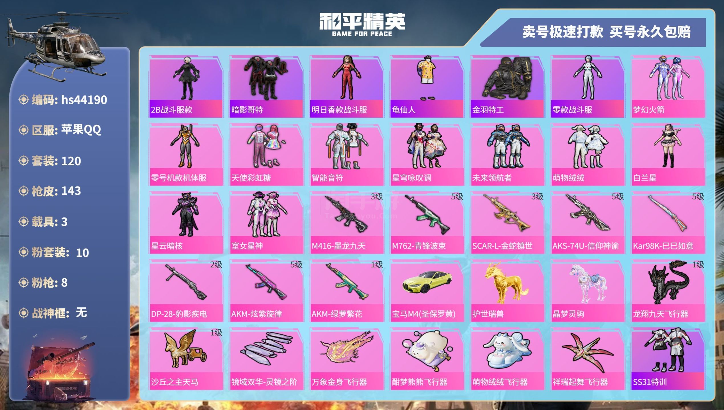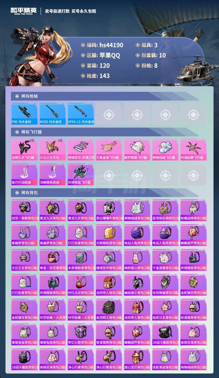 hs44190 苹果手Q-7王牌印记-10粉装-8特效枪-3载具-49692热力值-120套装-14