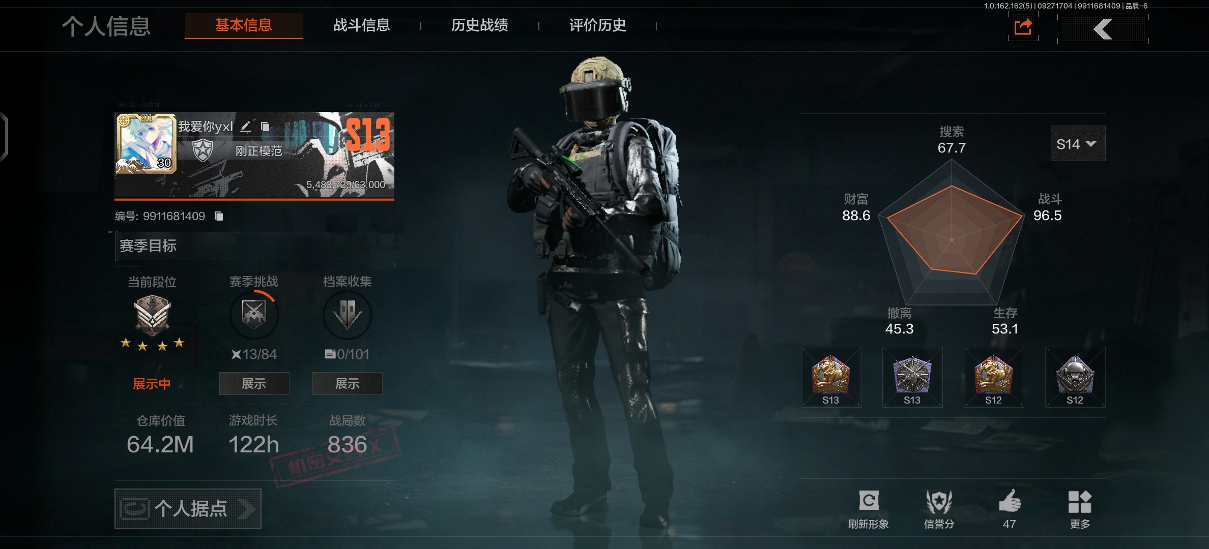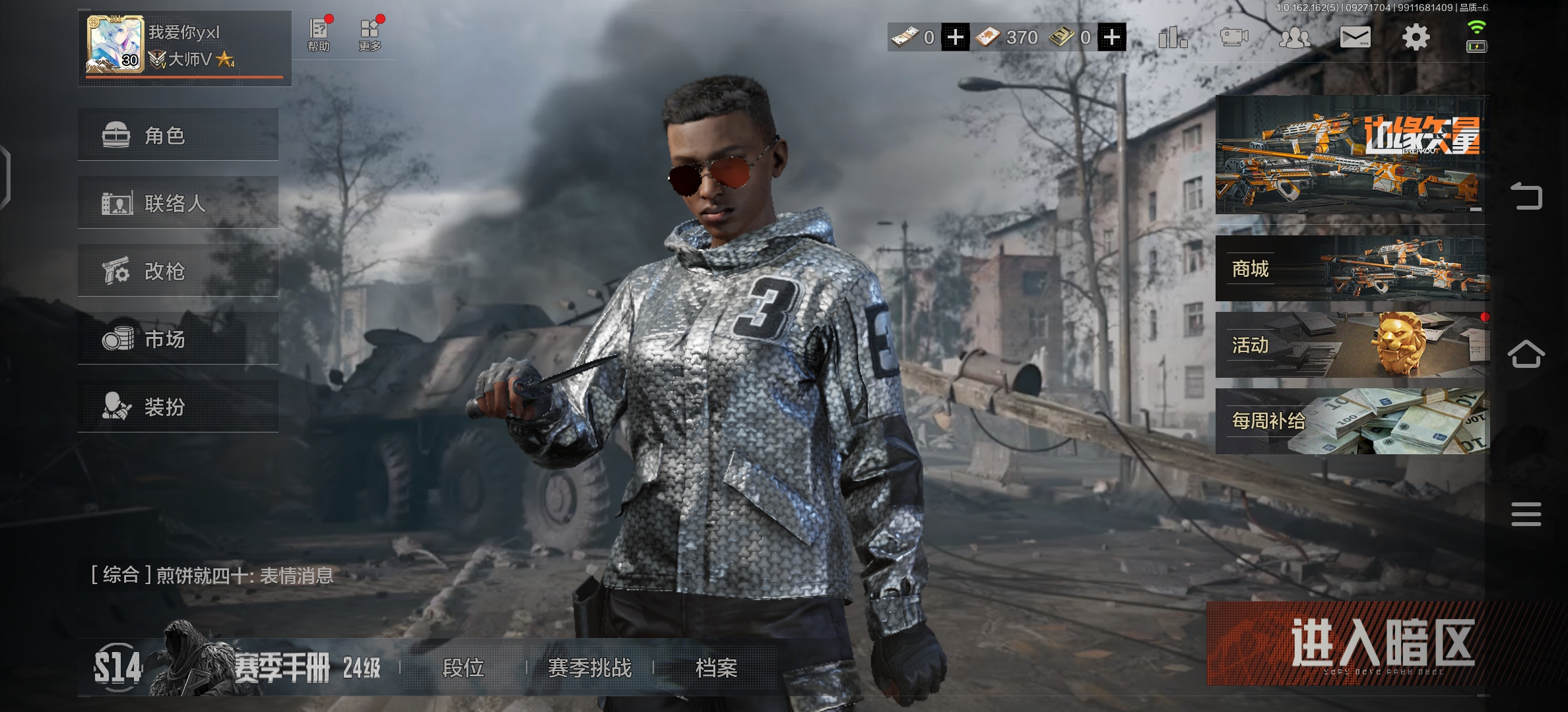 FY5538,总资产64m,近战武器:,工兵铲,角色装扮(紫):,电驭豹斑·短袖,三周年卫衣,都市夜