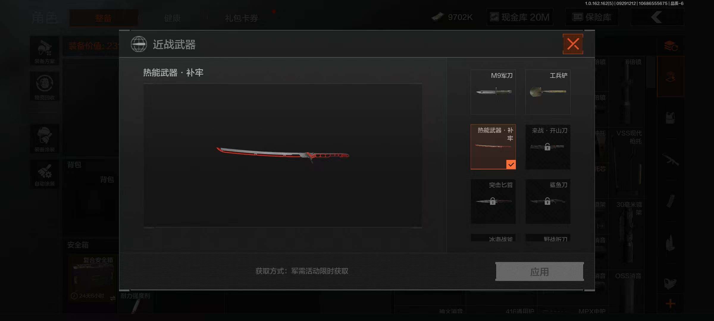 安卓QQ可二次,1把手感不错的刀皮,3把金枪,仓库价值32M,科恩币1000K