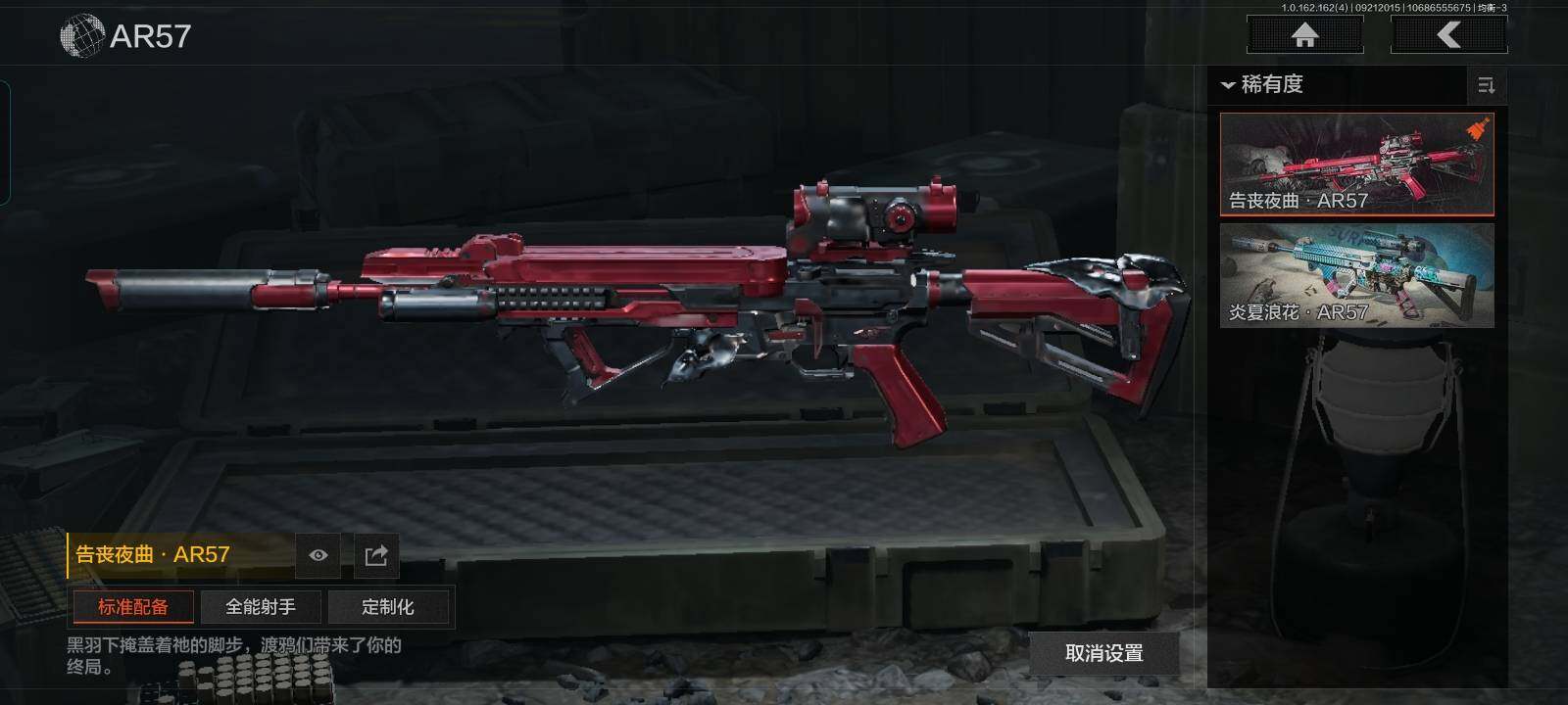 【金色枪皮】:利齿风暴·MPX,浮鳞影青·QBZ192,告丧夜曲·AR57