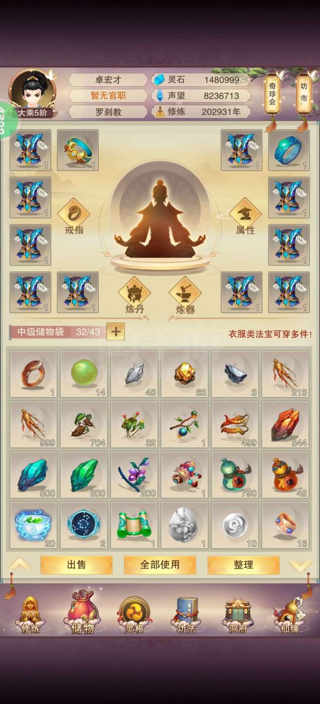 想不想修真【安卓4399】大乘●148万灵石823万声望