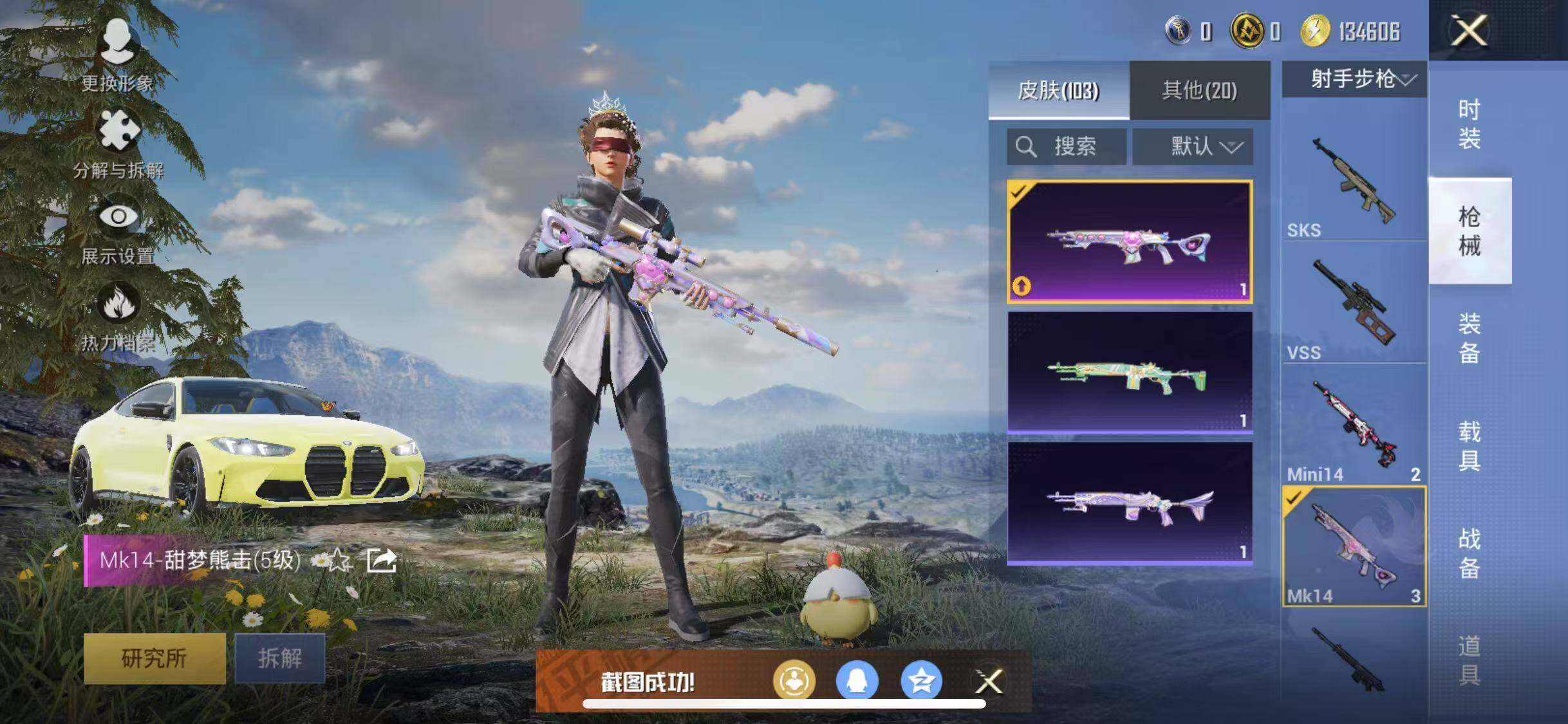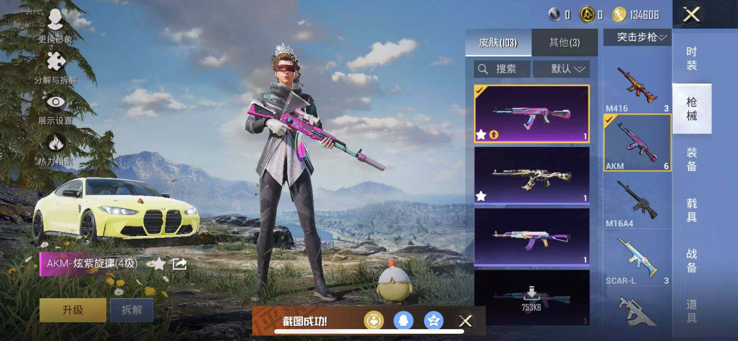 【粉色枪皮等级】:AKM-炫紫旋律(四级),M416-风花雪月(四级),AUG-暖羊咩咩(五