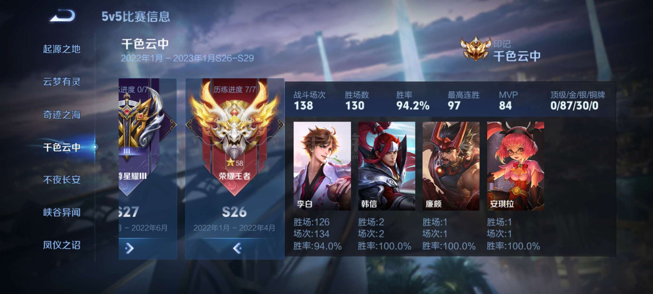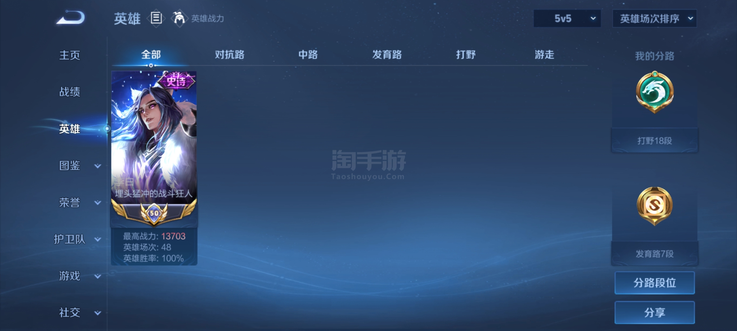 历史全国50强李白,S41赛季48连胜,100%胜率李白