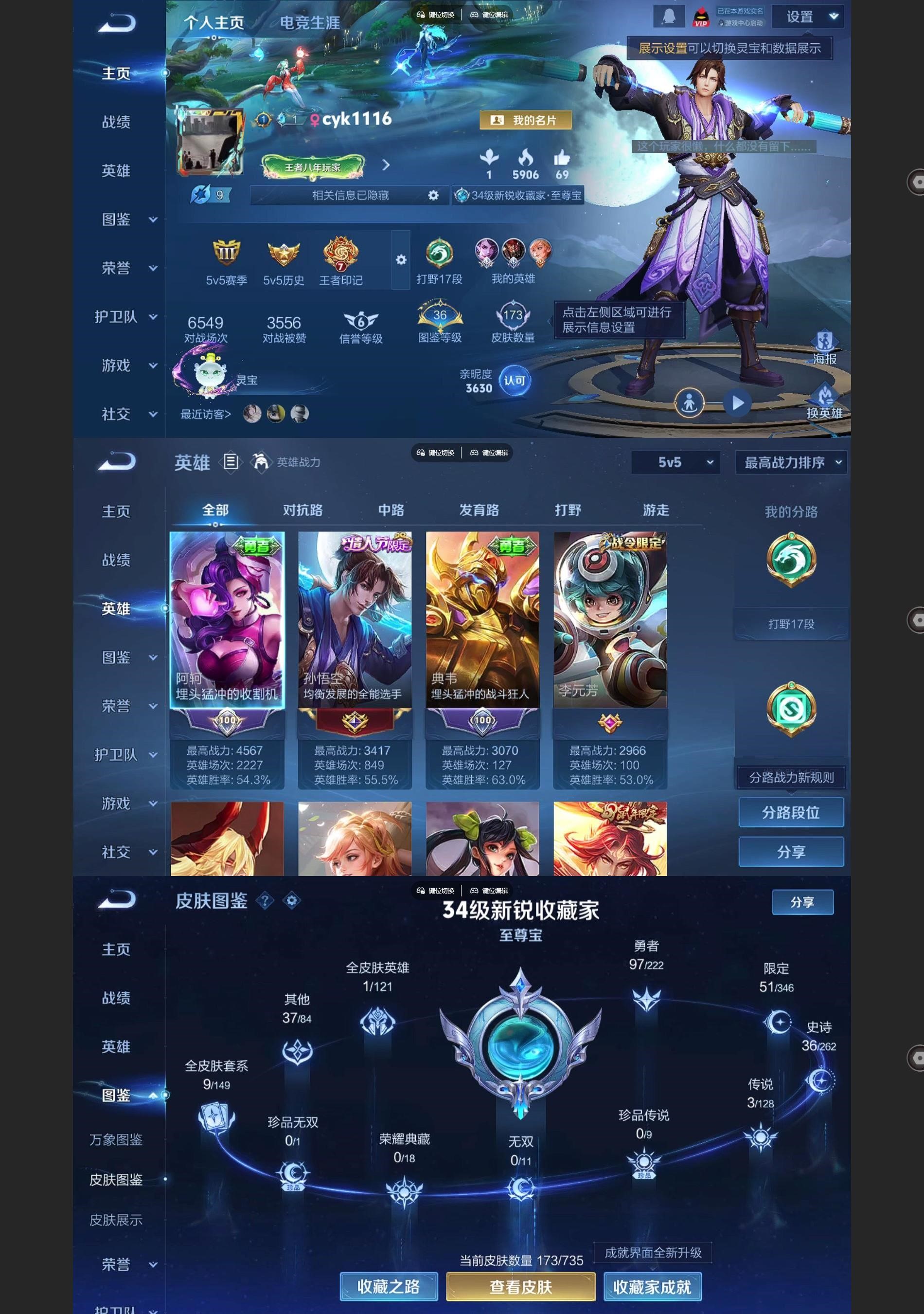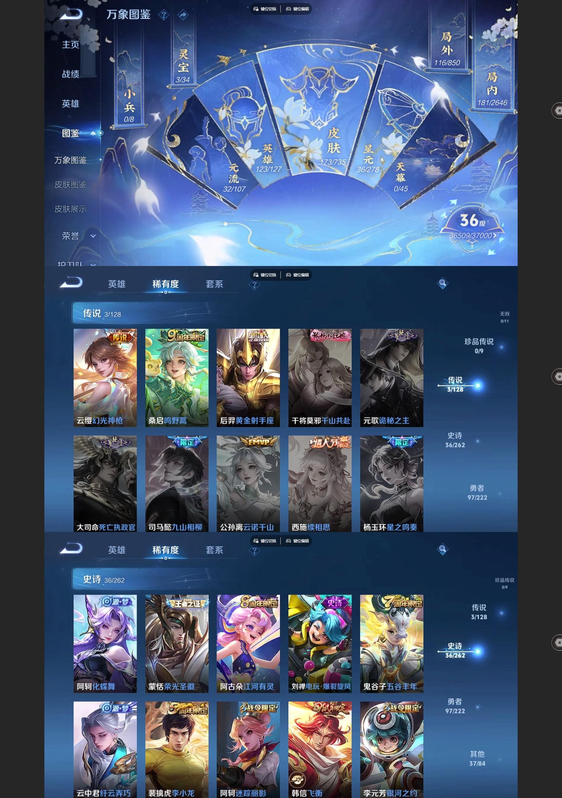 [王者荣耀]V53传说36史诗173皮肤至尊星耀III