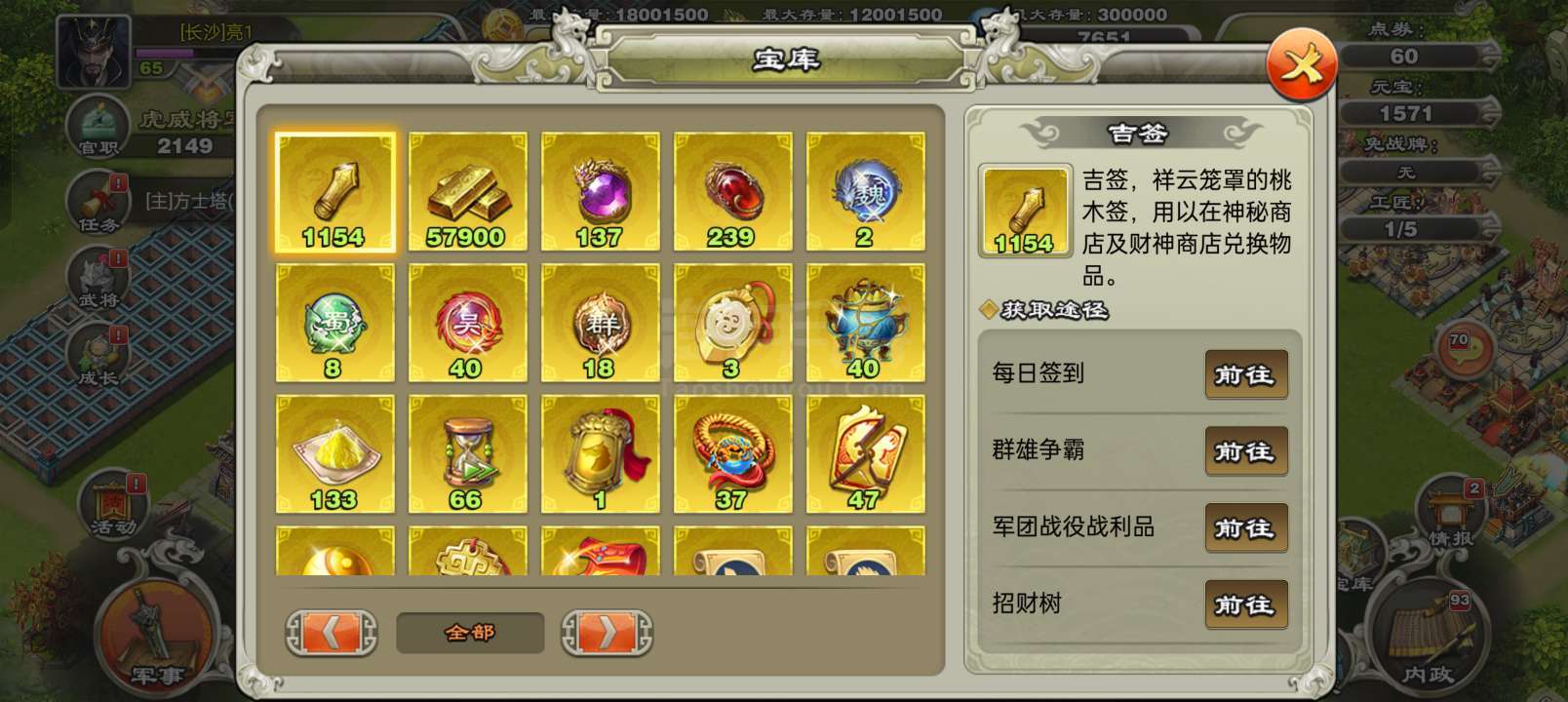 君临天下【安卓官方】65级两千多元宝1111吉签10根羽毛