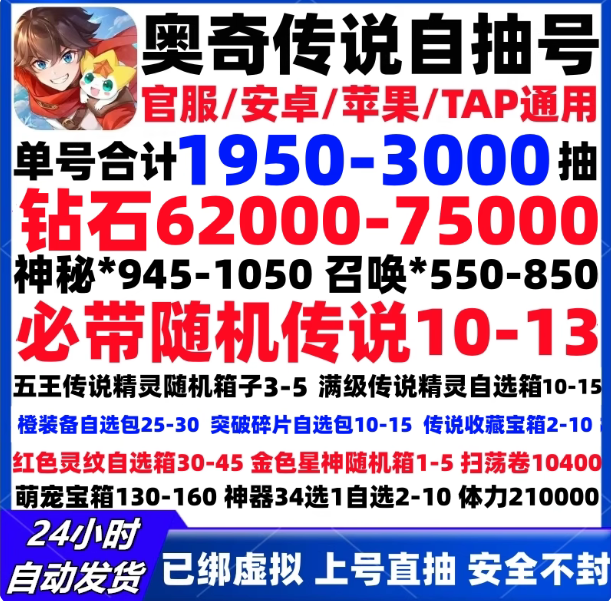 奥奇传说【全服通用】官服死绑♦单号1900+抽 必带10+传说♦其中含【60000+钻 1400+总唤卷】♦