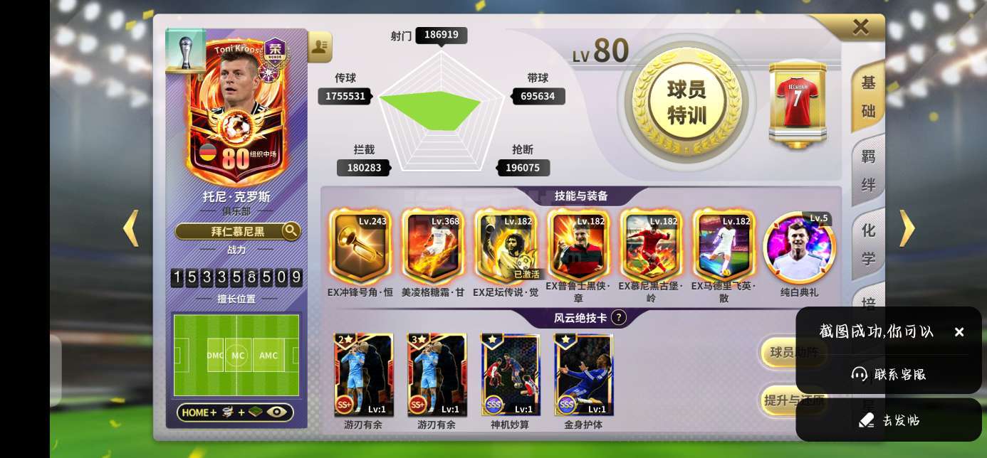 v15德拜套,背包资源多可瞬秒一天王,替补席有罗本和龙哥,贴纸多