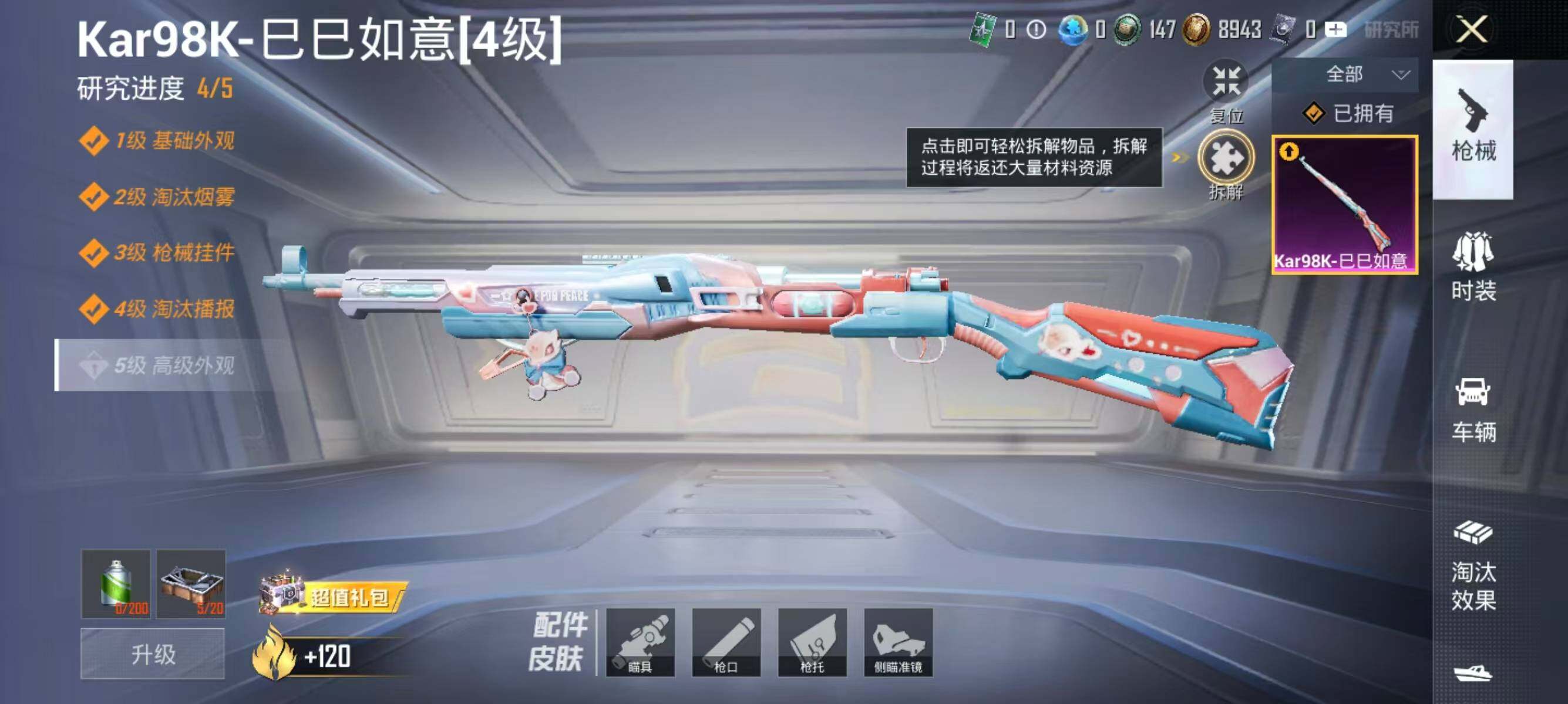 【粉色枪皮等级】:Kar98K-巳巳如意(四级)