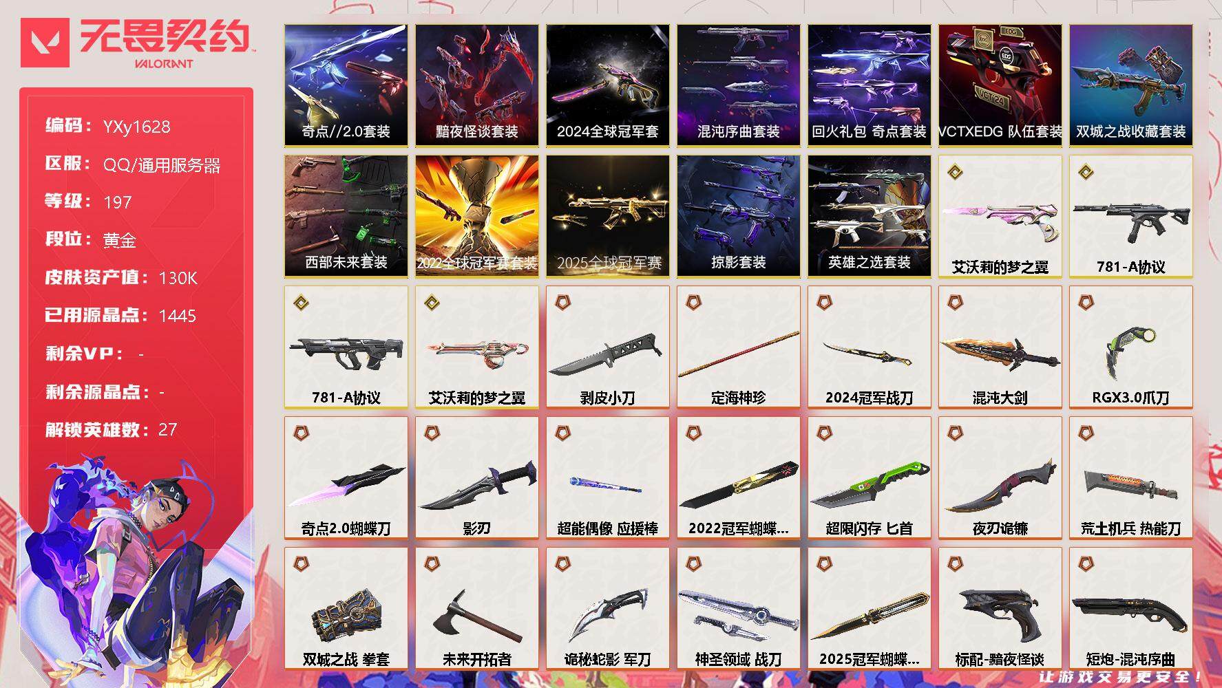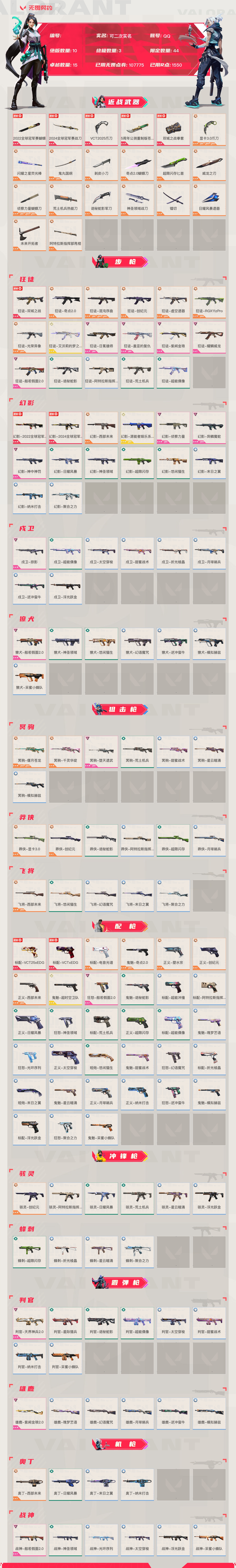 无畏契约【端游】Lv183|钻石I, 刀皮数量20,枪皮数量131(绝版10限