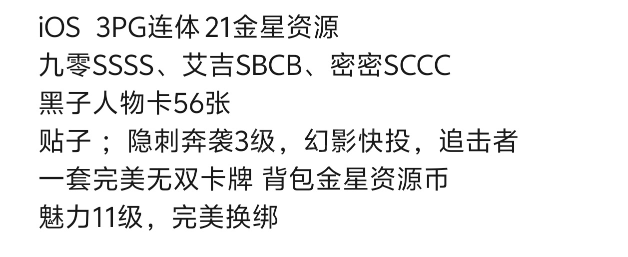 热血街篮【苹果其他】iOS 3PG连体 21金星资源九零SSSS、艾吉SBCB、密密SCCC黑子人物卡56张贴子
