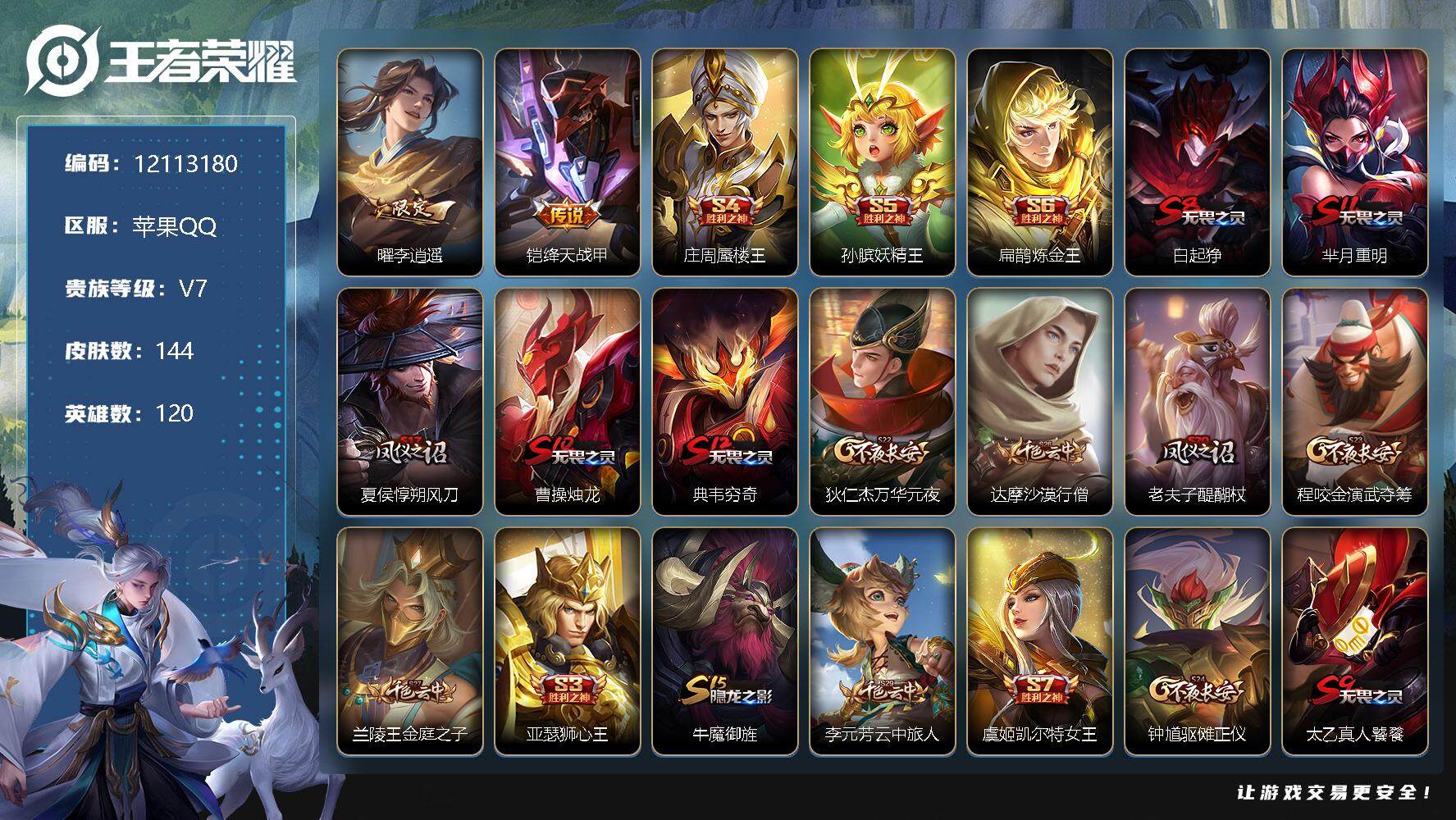 王者荣耀【苹果QQ】【12113180】[12113180]实名: 可修改 性别: 男号 贵族等级