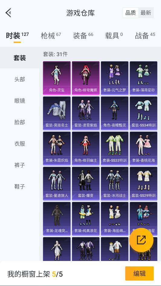 时装数: 127 枪械数: 67 战备数: 45 热门装扮: 绯穹魔姬 稀有枪