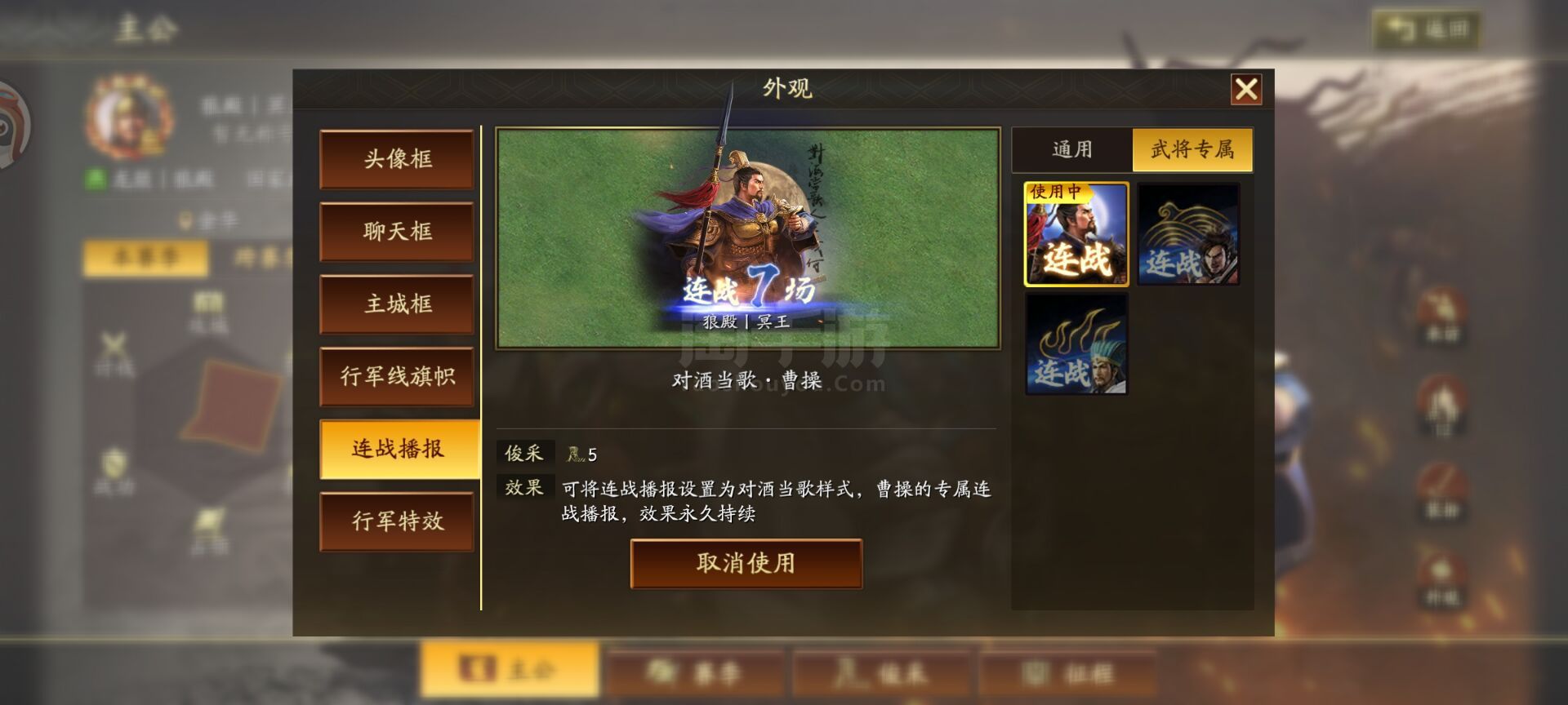 曹操皮肤 连战播报 战法 特技都挺多 图片太多没法上传 找我给你看