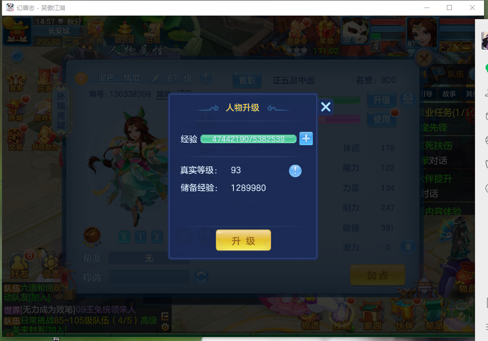 87级女耀华 151万银 3458丹 2.41亿铜币