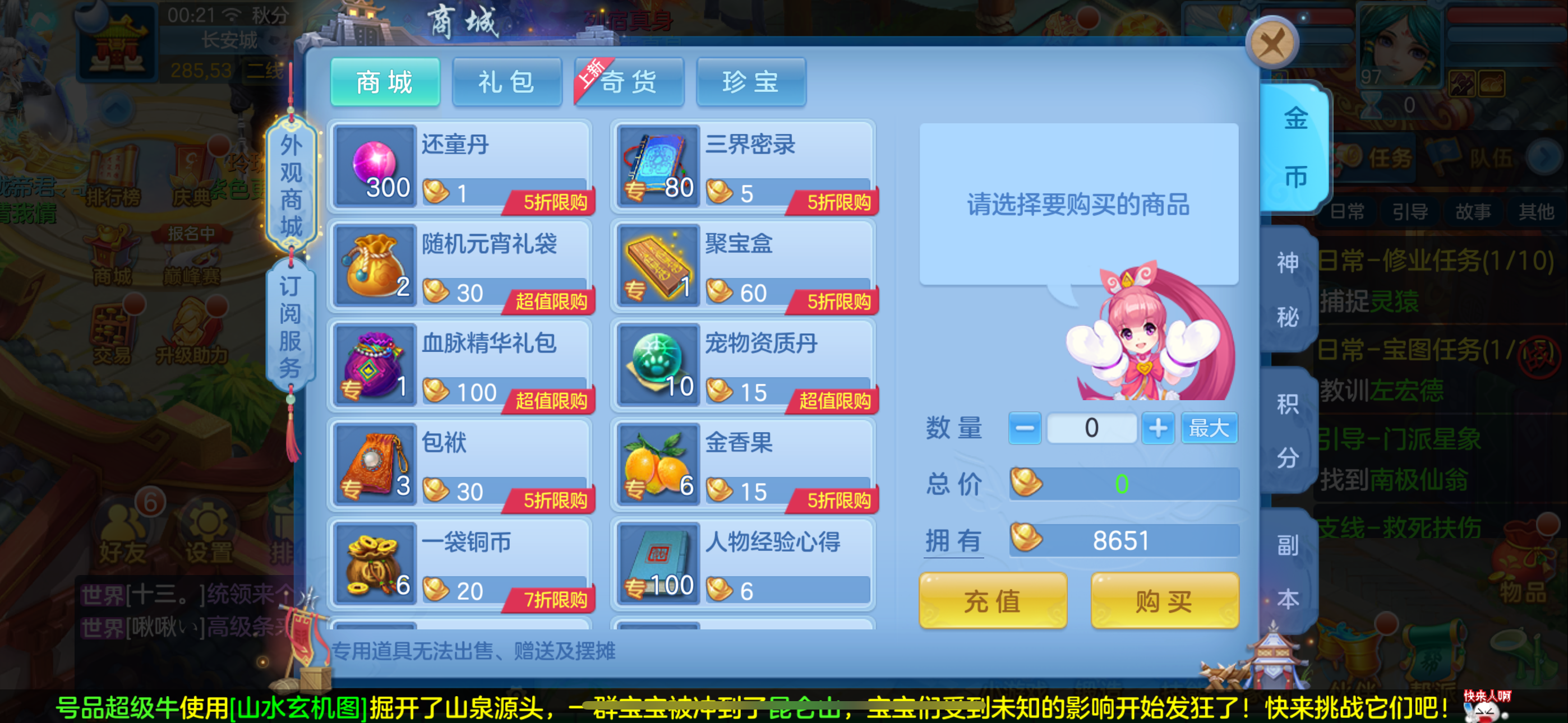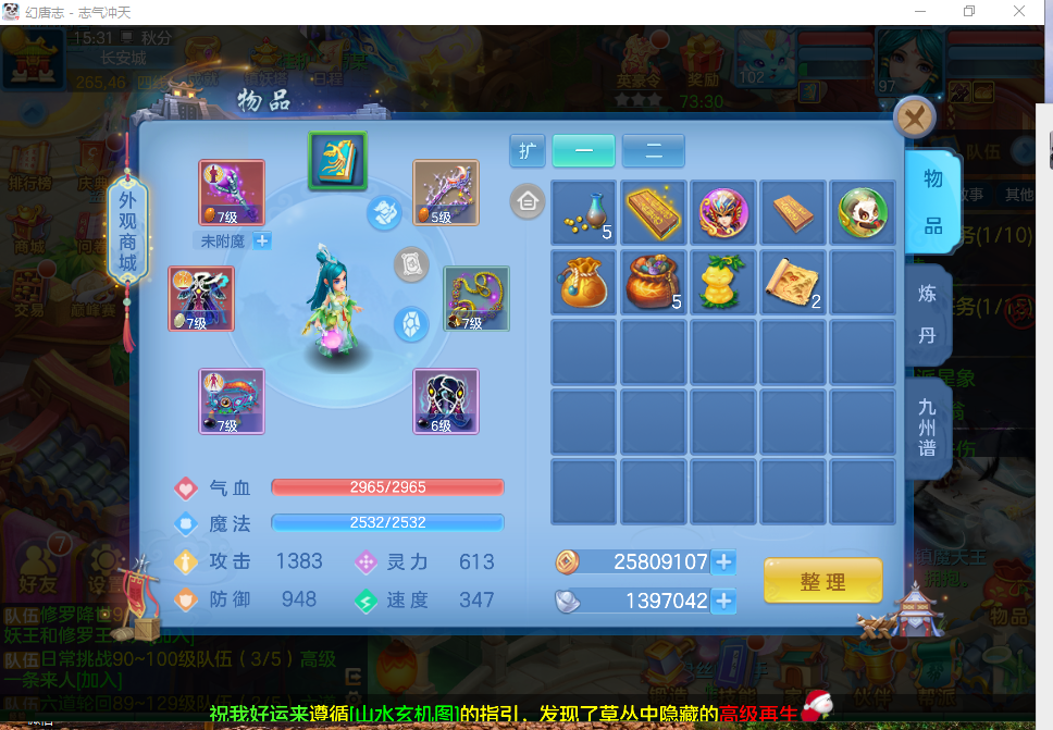 志气冲天 97级 女天宫 神兽雪精灵 8651金子