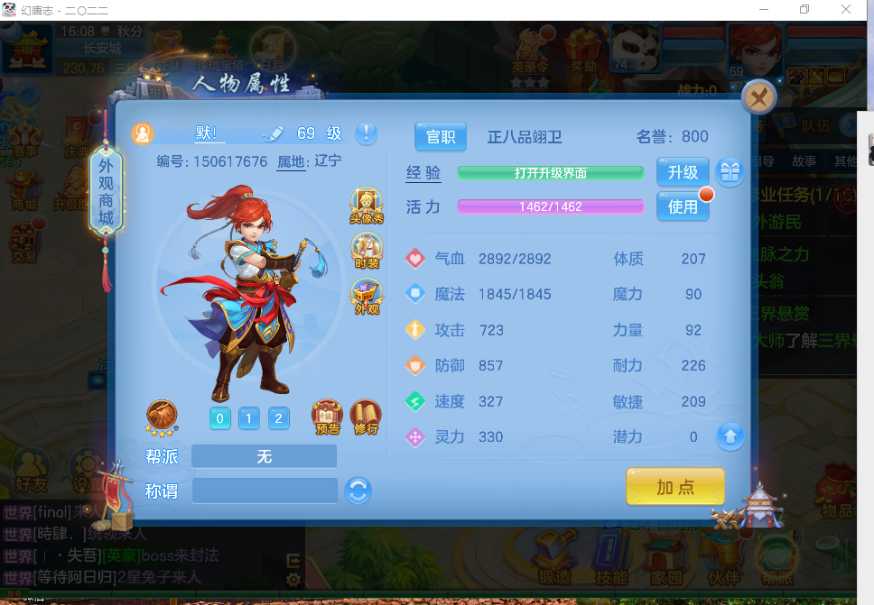 2022区69级男佛门 172万银 431还童 4697万铜币
