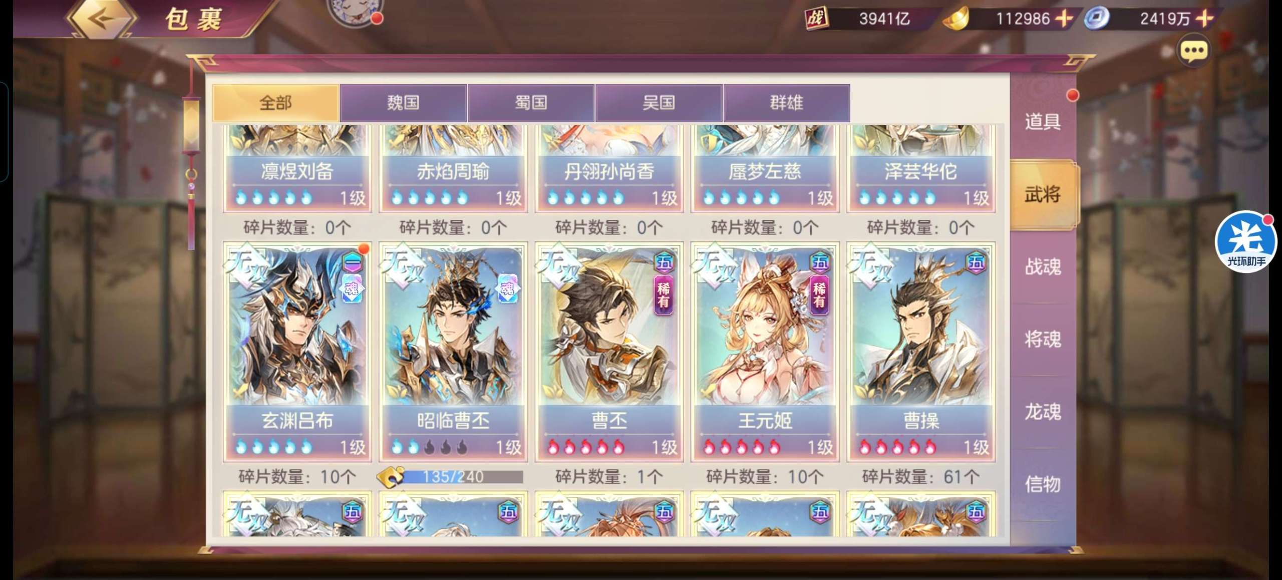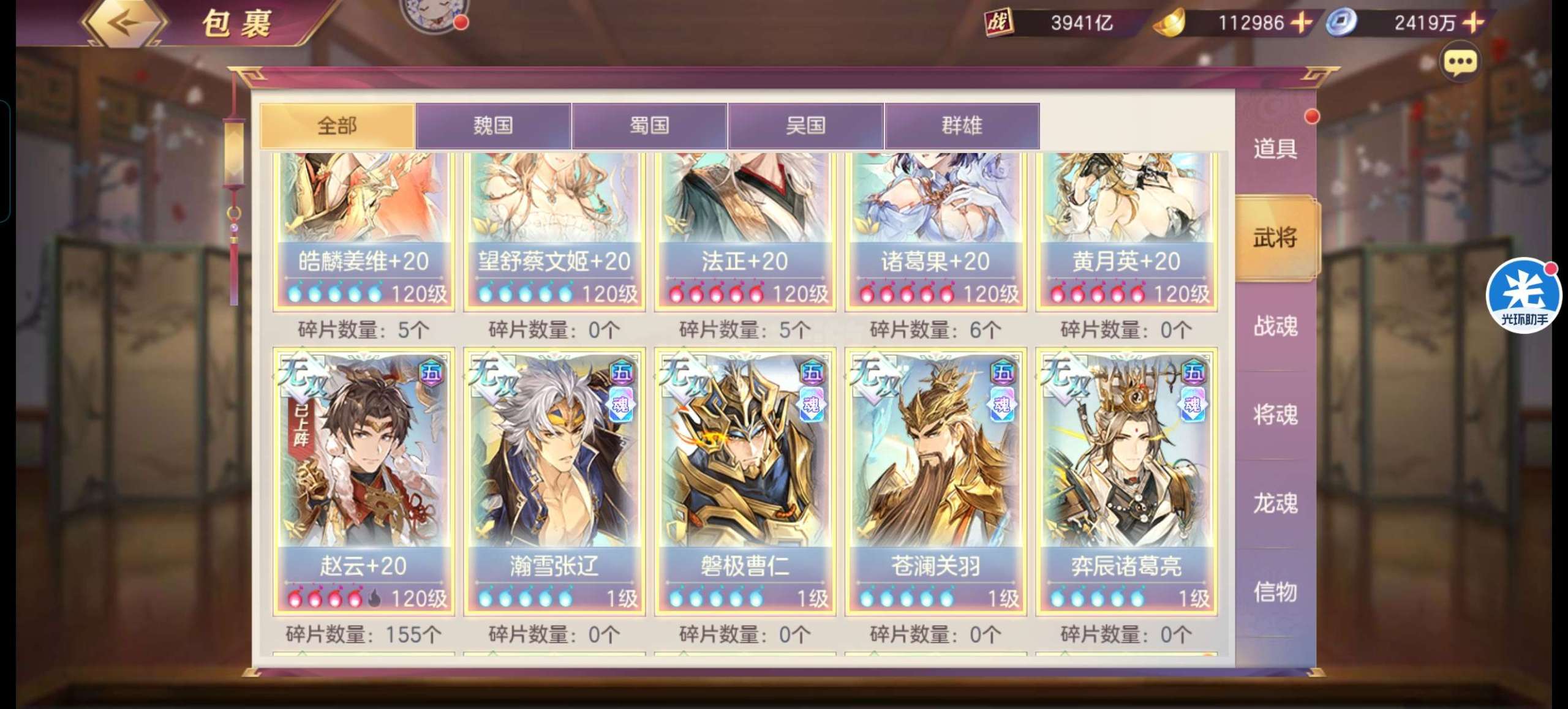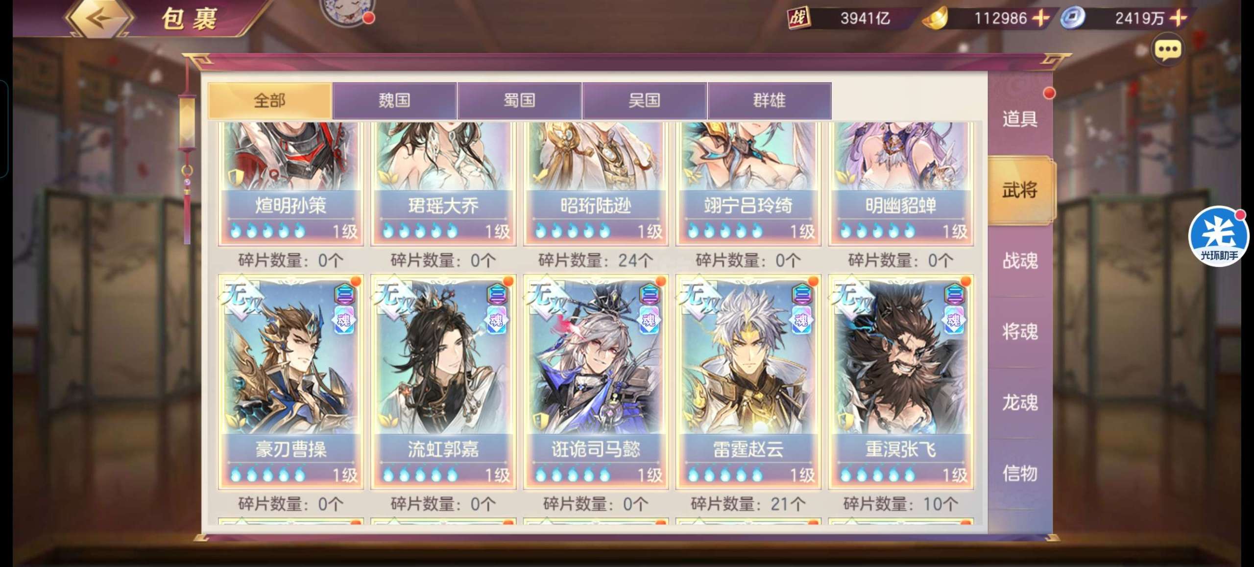 三国志幻想大陆【安卓官方】4000亿氪金8万多,全主角时装,全龙魂皮肤还多二个水晶,魅力值25000多,能看能打,战力排名2,