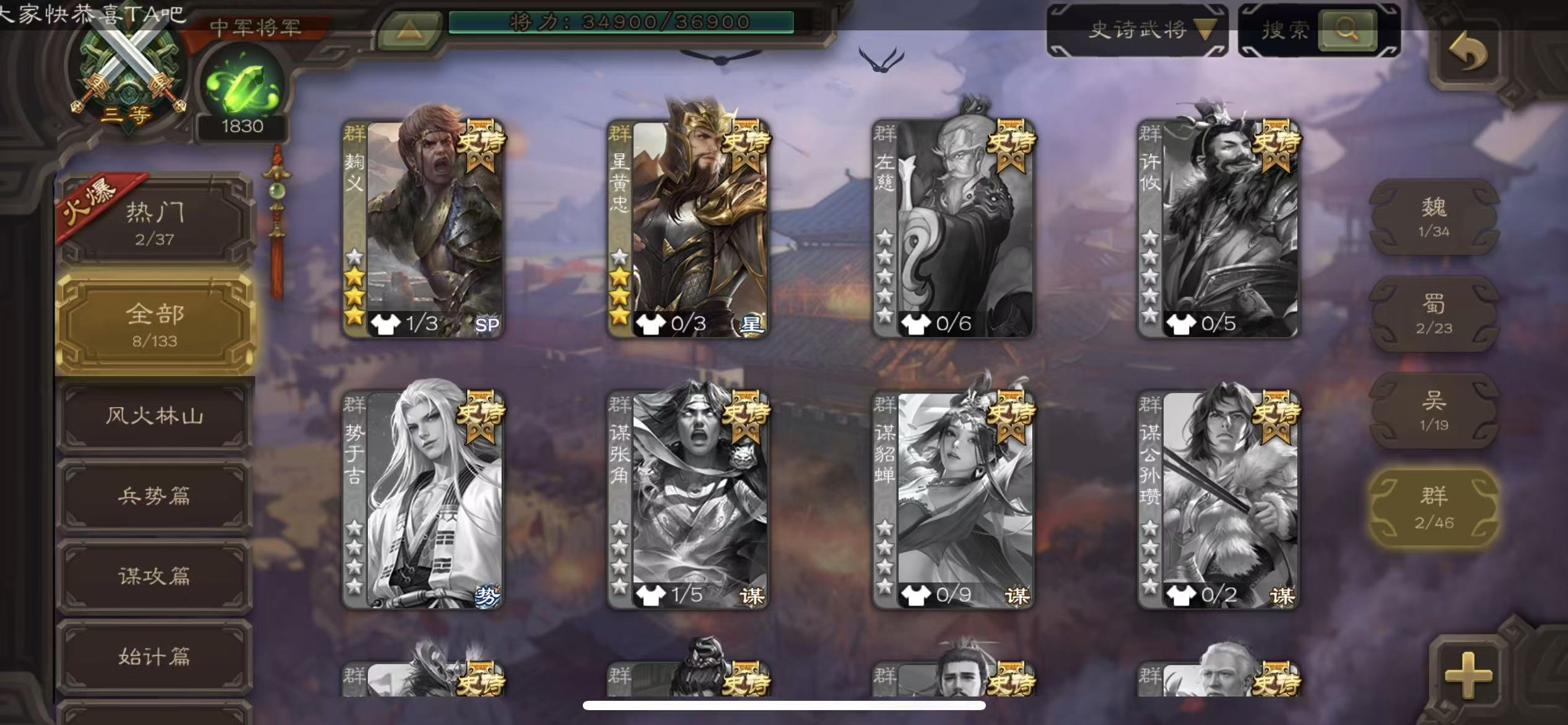 史诗武将数量: