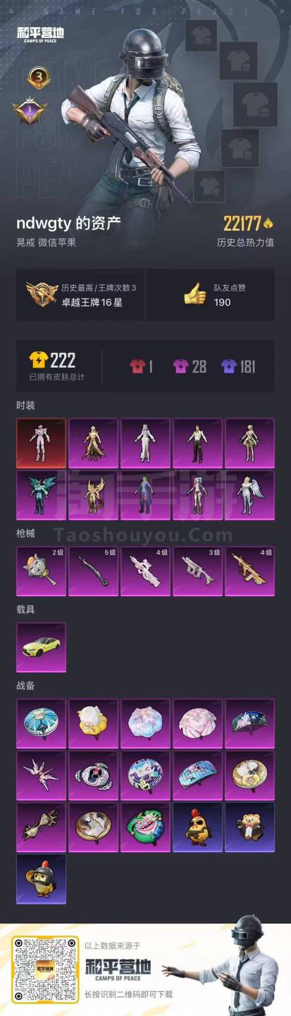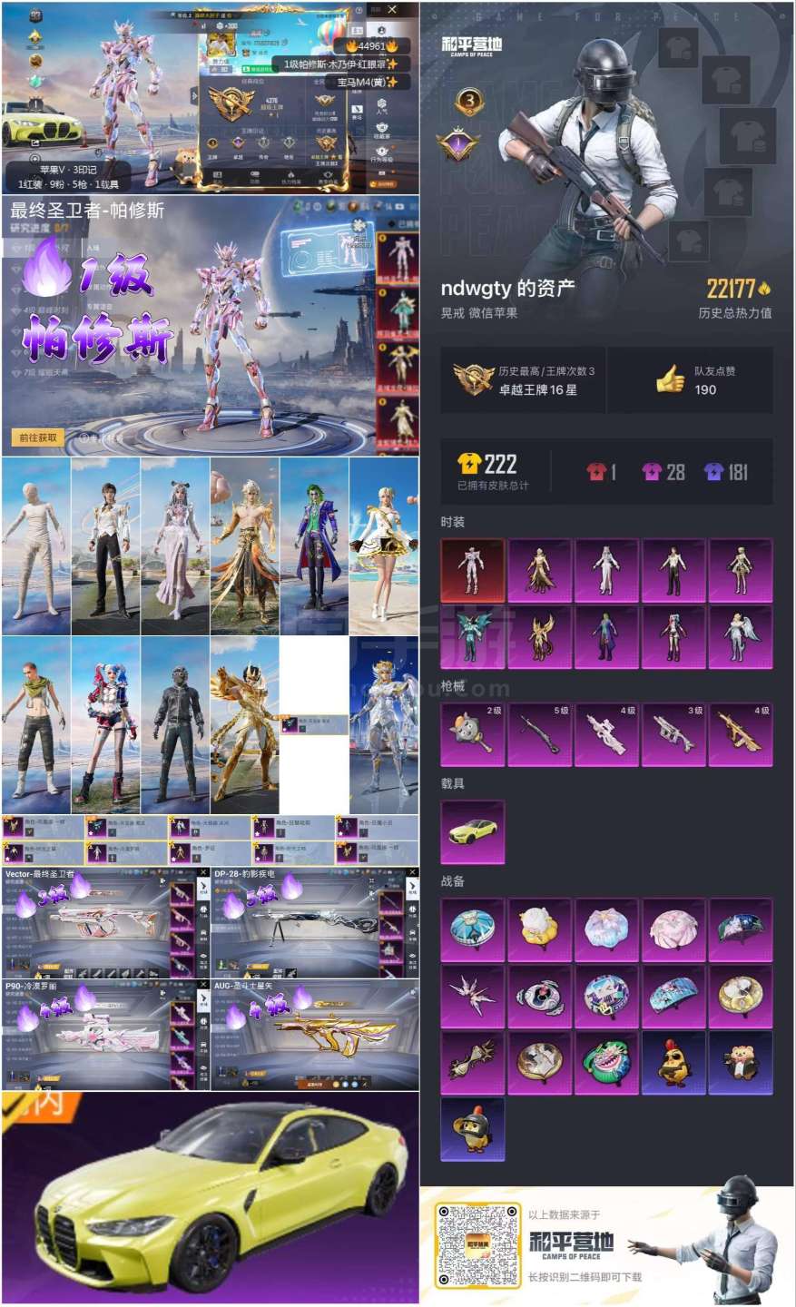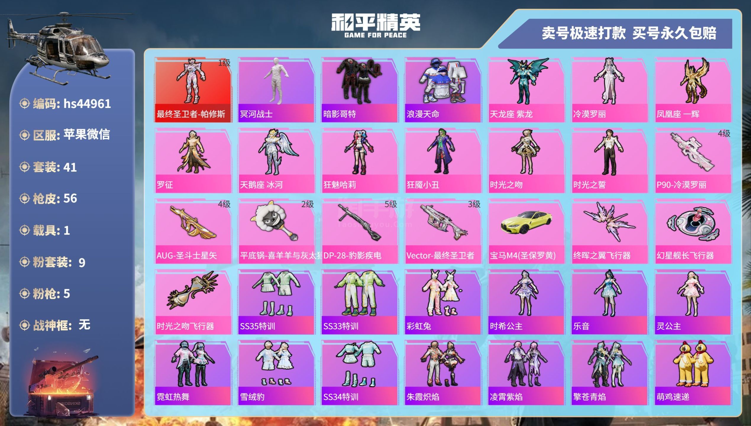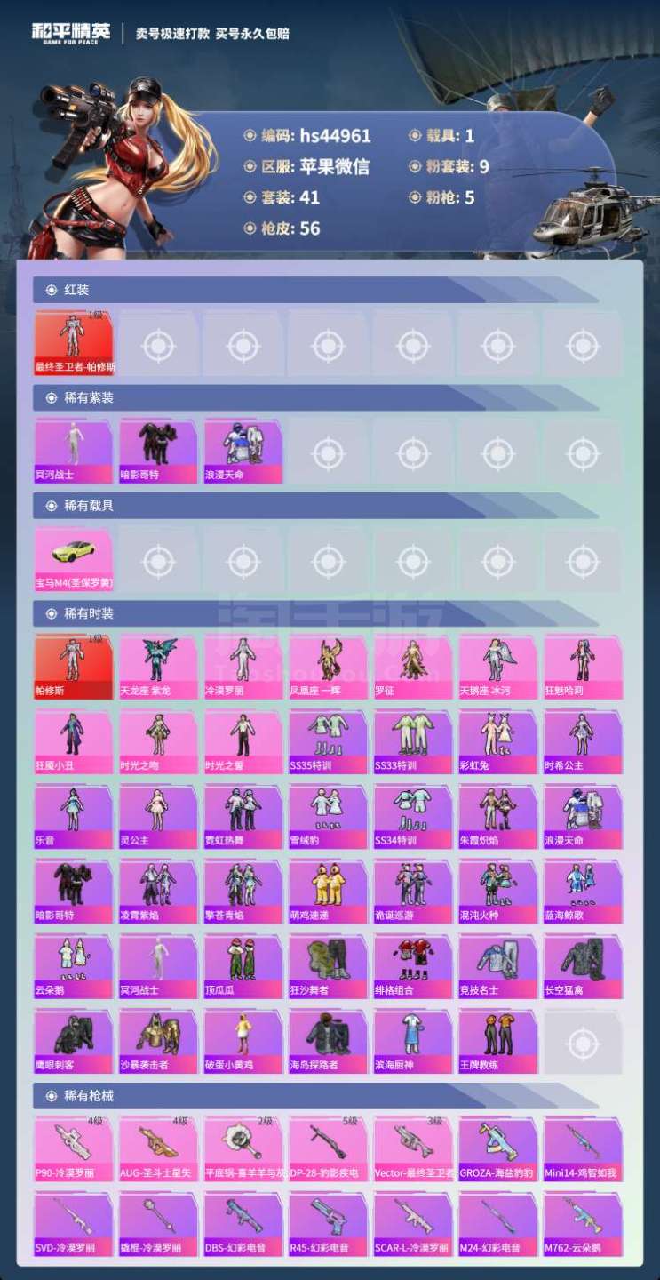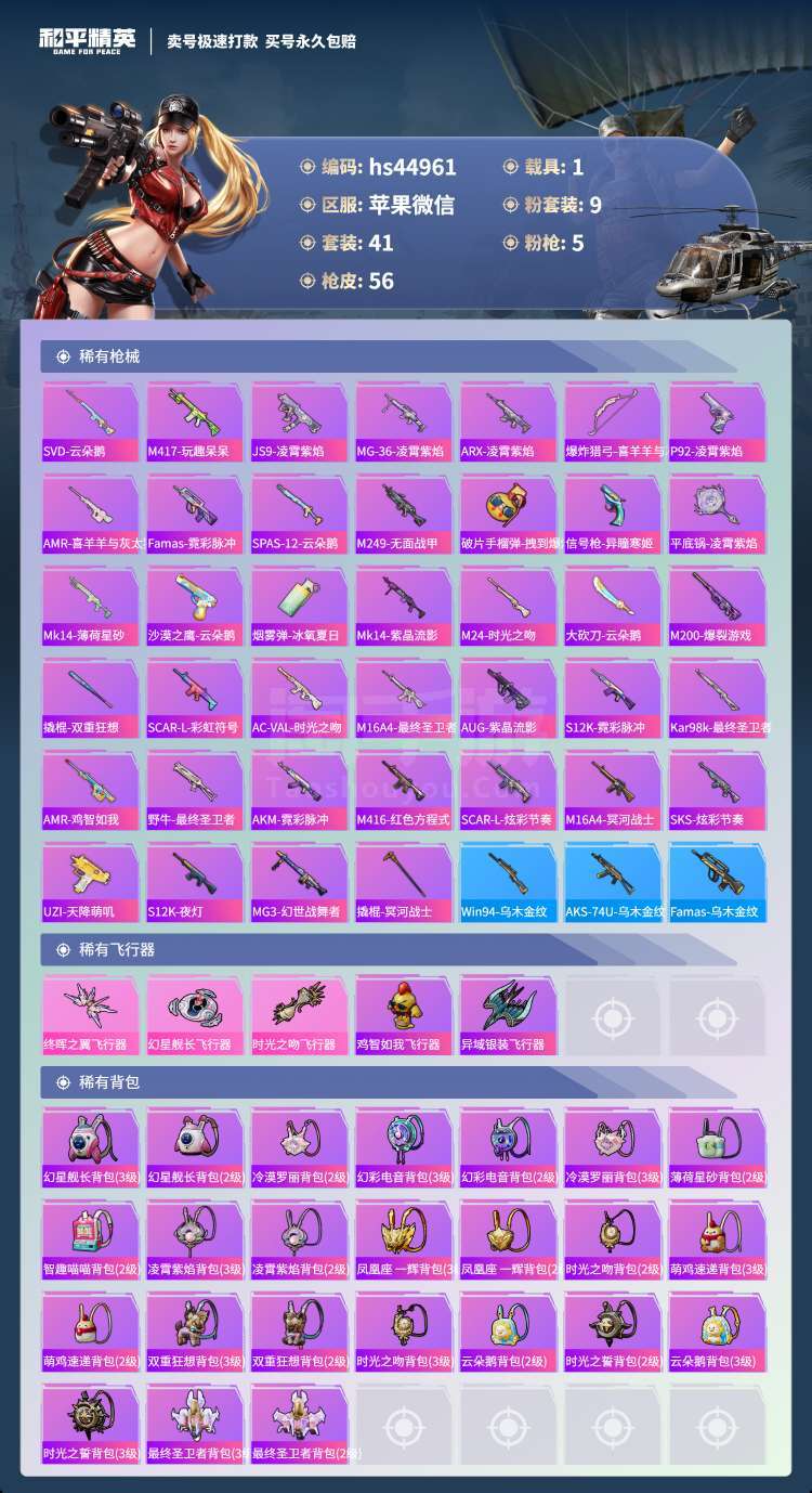 hs44961 苹果微-3王牌印记-9粉装-5特效枪-1载具-22177热力值-41套装-56枪皮
