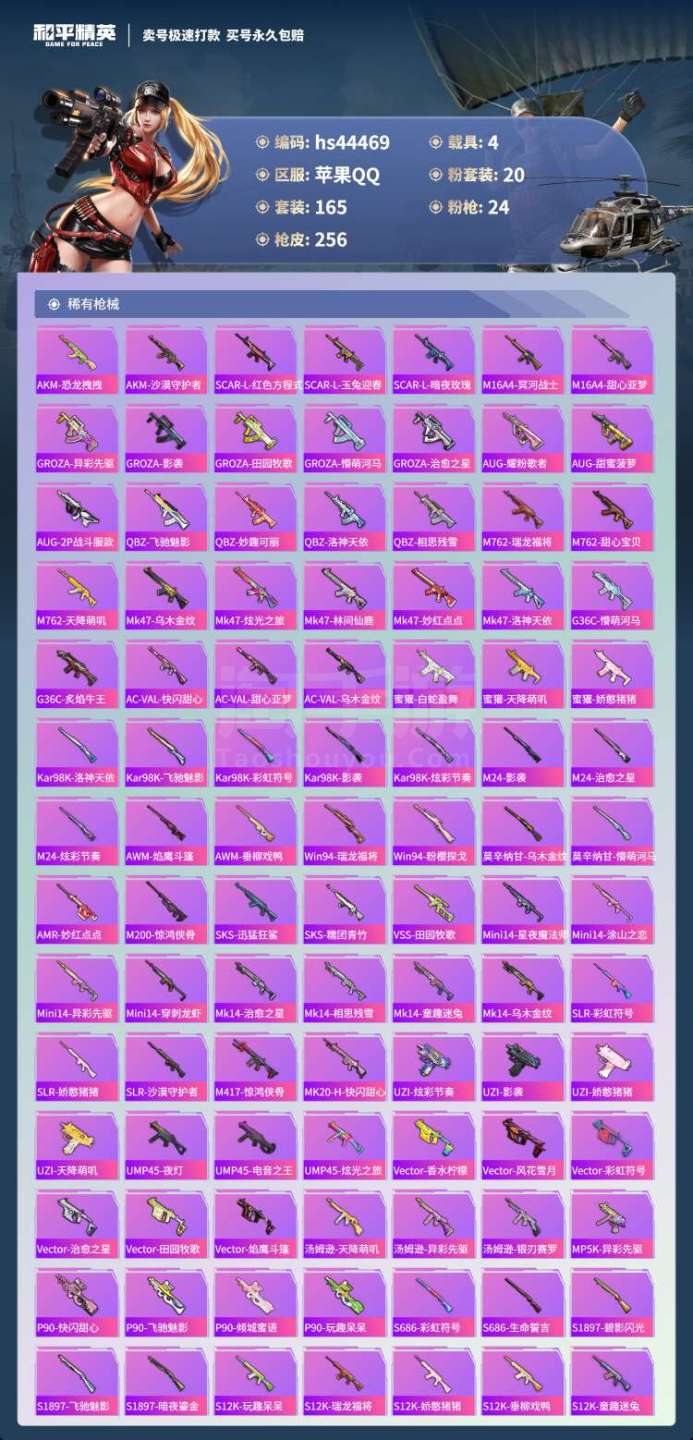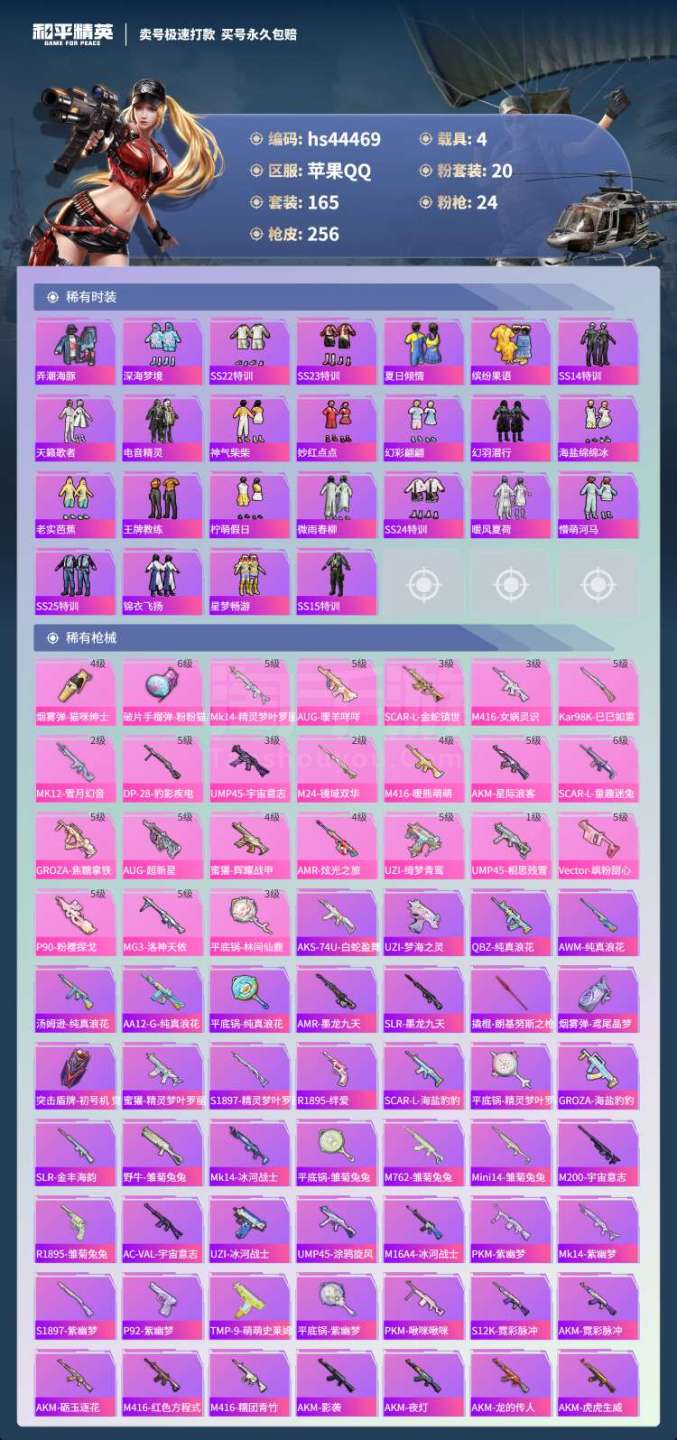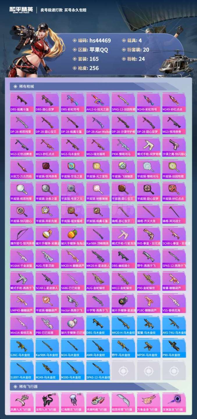 hs44469 苹果手Q-16王牌印记-20粉装-24特效枪-4载具-100259热力值-165套装