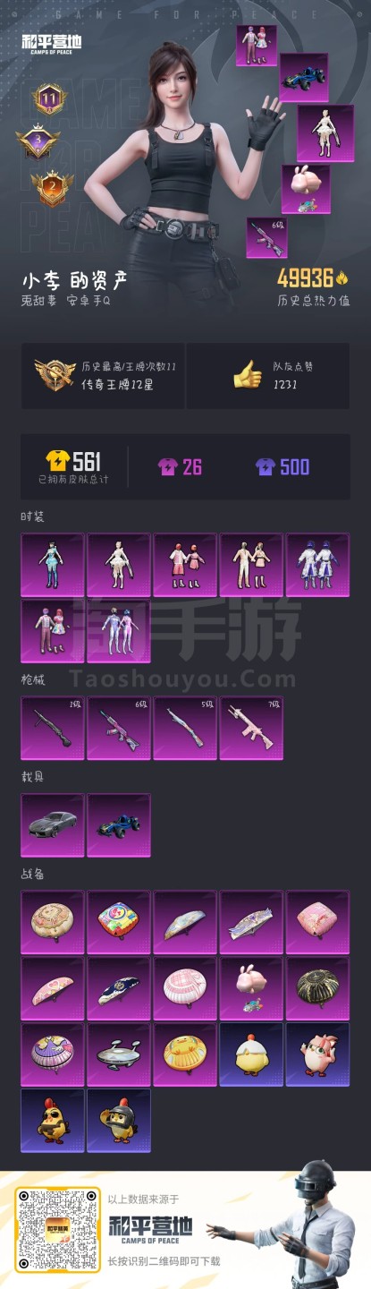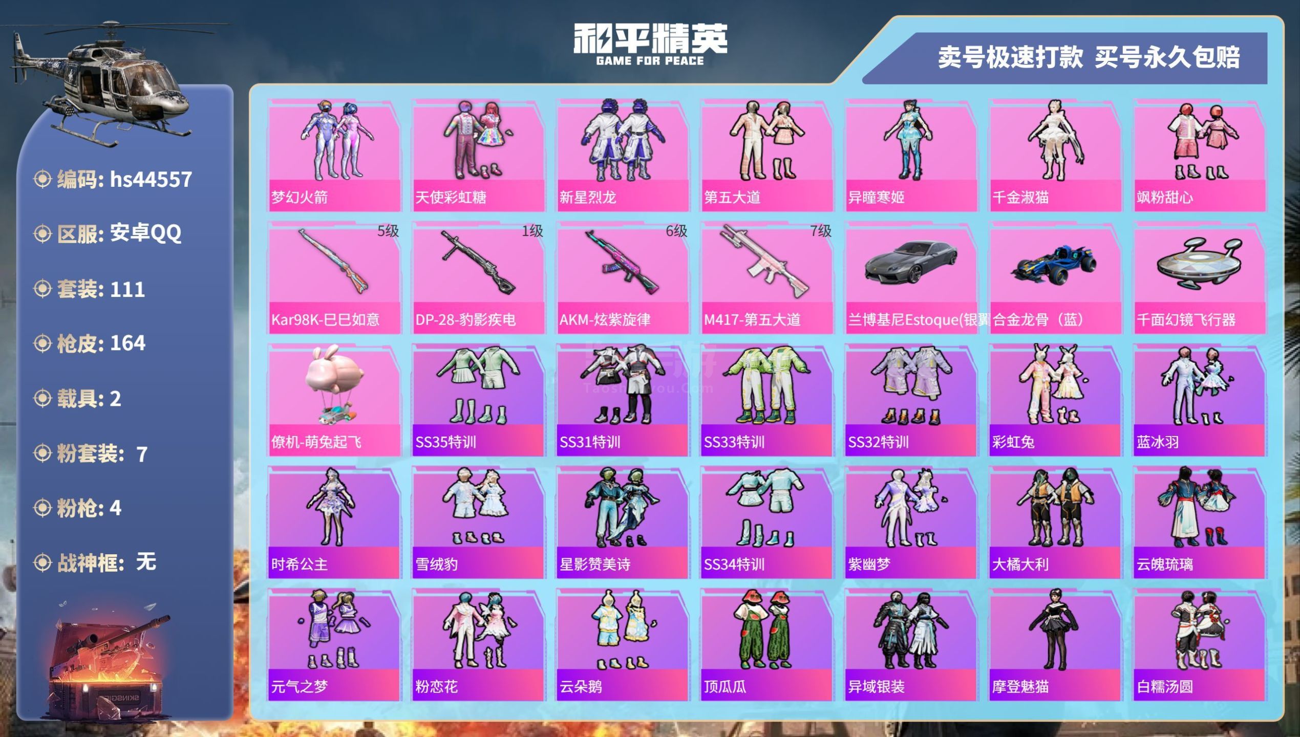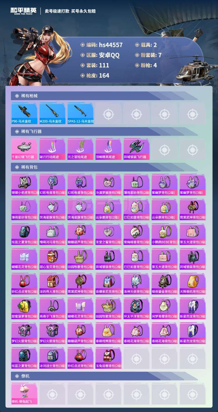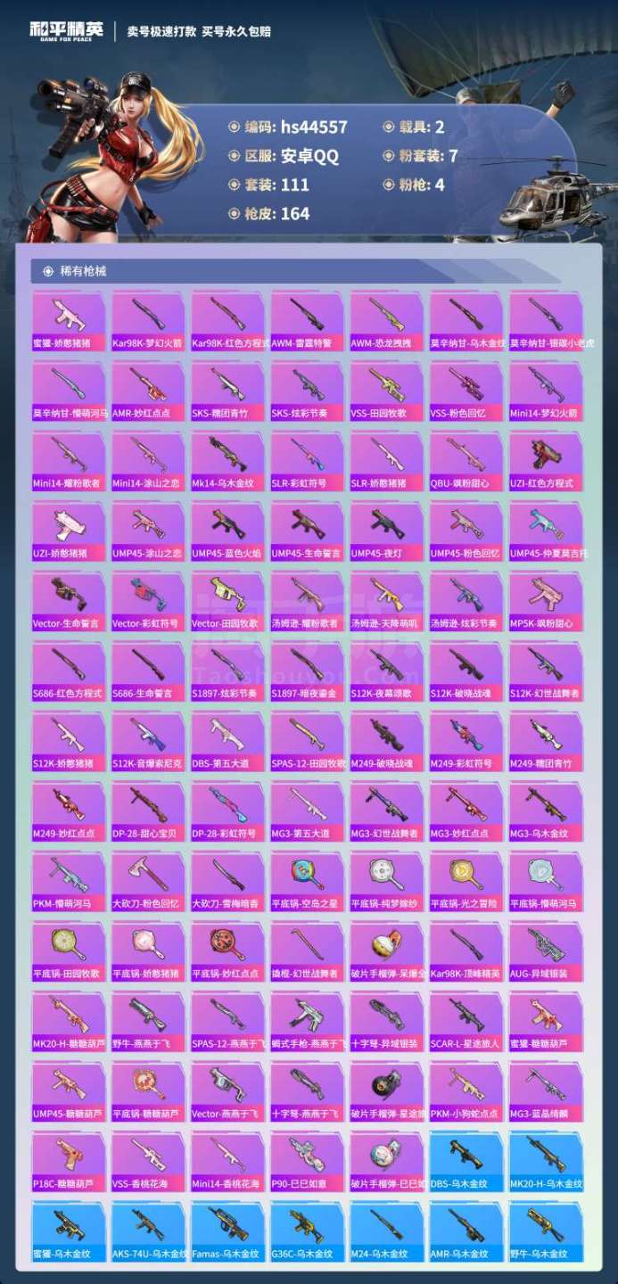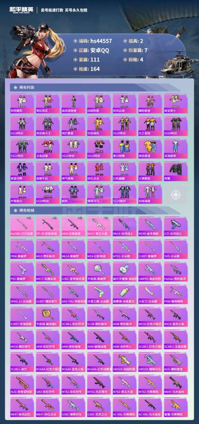 hs44557 安卓手Q-11王牌印记-7粉装-4特效枪-2载具-49936热力值-111套装-16