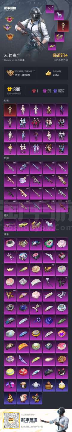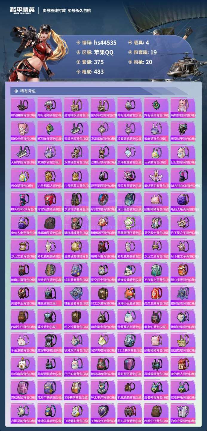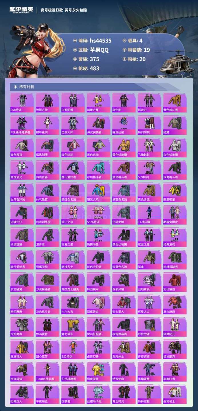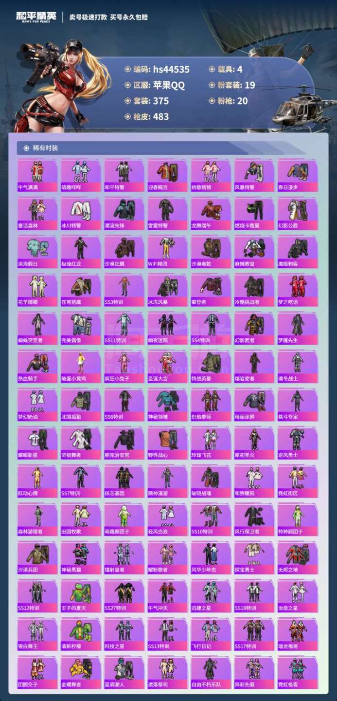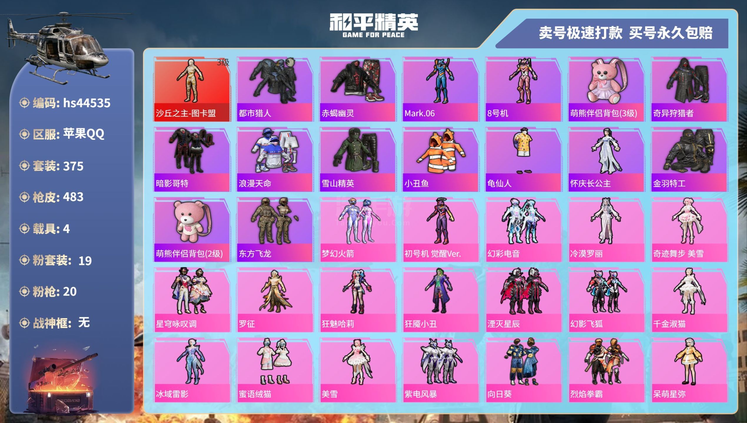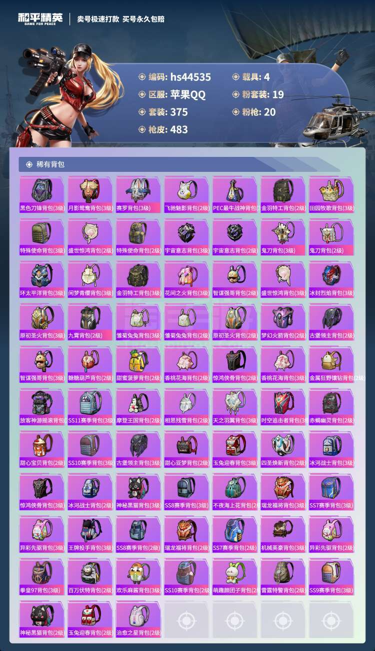hs44535 苹果手Q-17王牌印记-19粉装-20特效枪-4载具-164070热力值-375套装