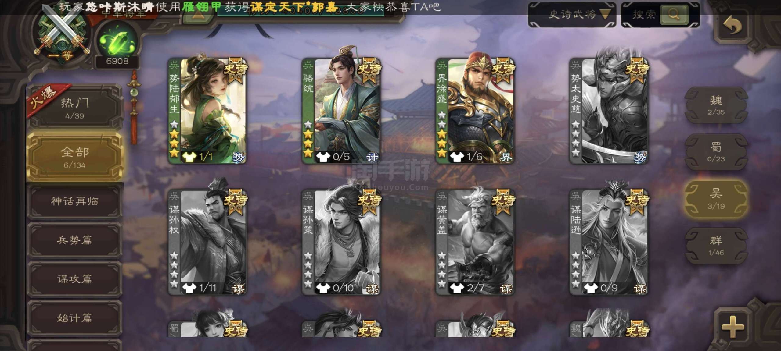 三国杀【安卓官方】4.4宝珠大宝橘子妹团长白马戏子,还有军八女王谋黄月英 7600浆糊9.2w毛可活绑天子令已开