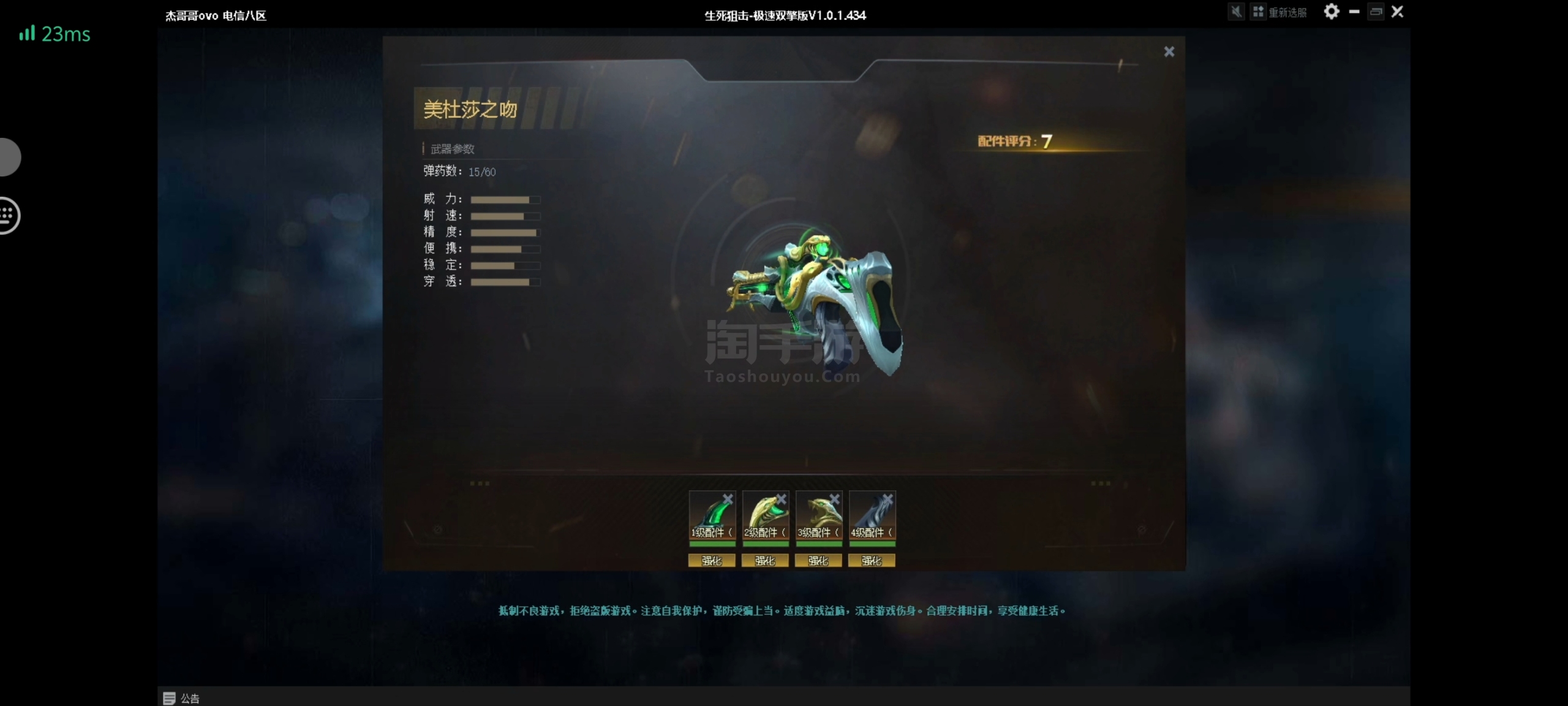 生死狙击(端游)【端游】V5季军魅影一暗水二灰核330多少战力多配件武器有很大提升空间