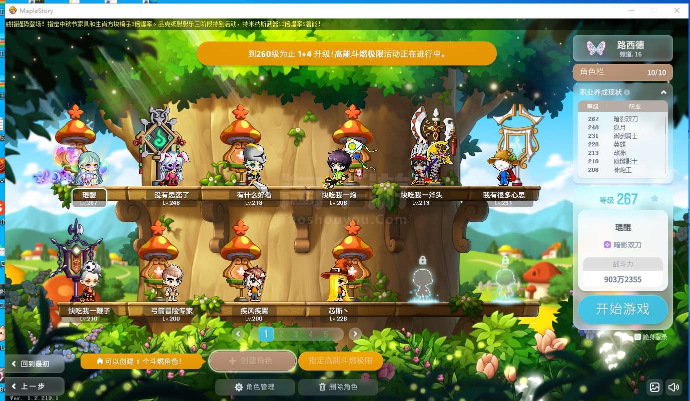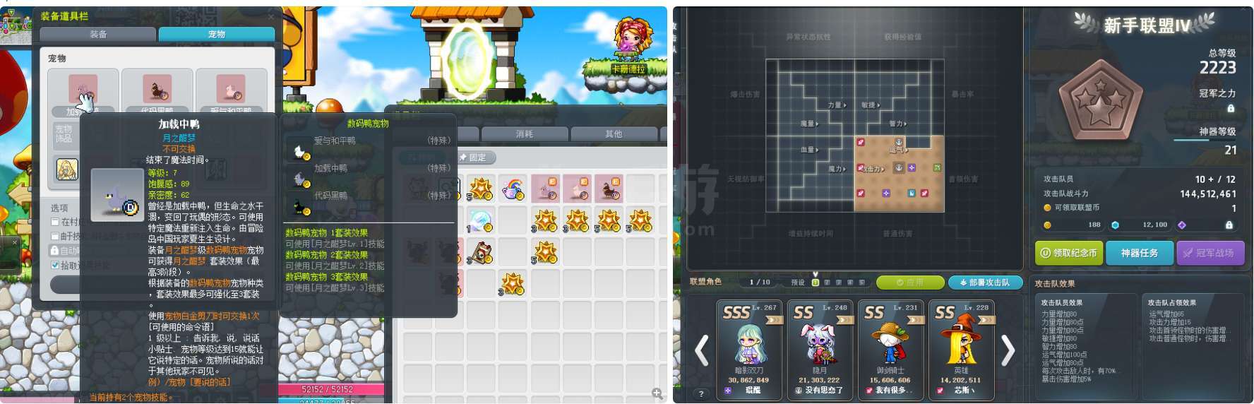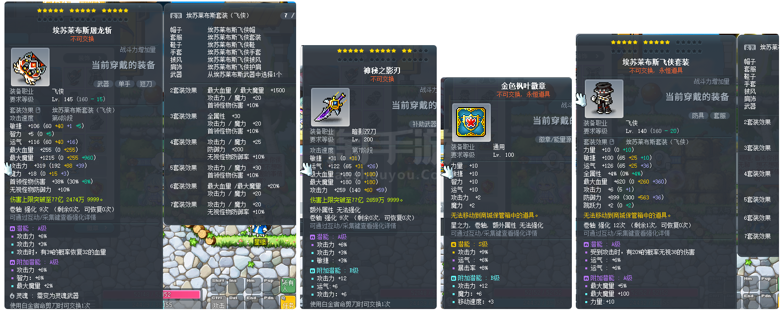 冒险岛【端游】暗影双刀近1000万战力2000联盟10角色神秘武器爱苏全套s高贝套几件ss绿装备一套特殊宠