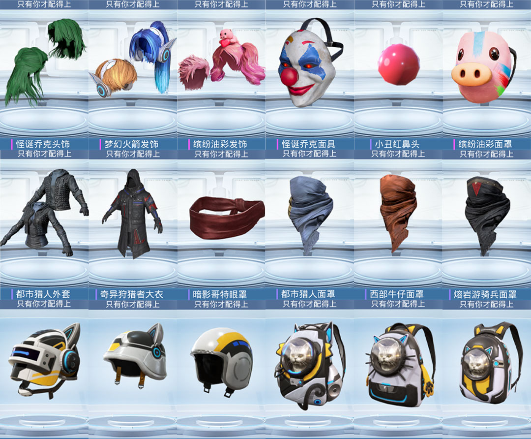 紫装: 都市猎人,潮萌小黄鸭,小丑鱼,暗影哥特,奇异狩猎者,酷熊伴侣,