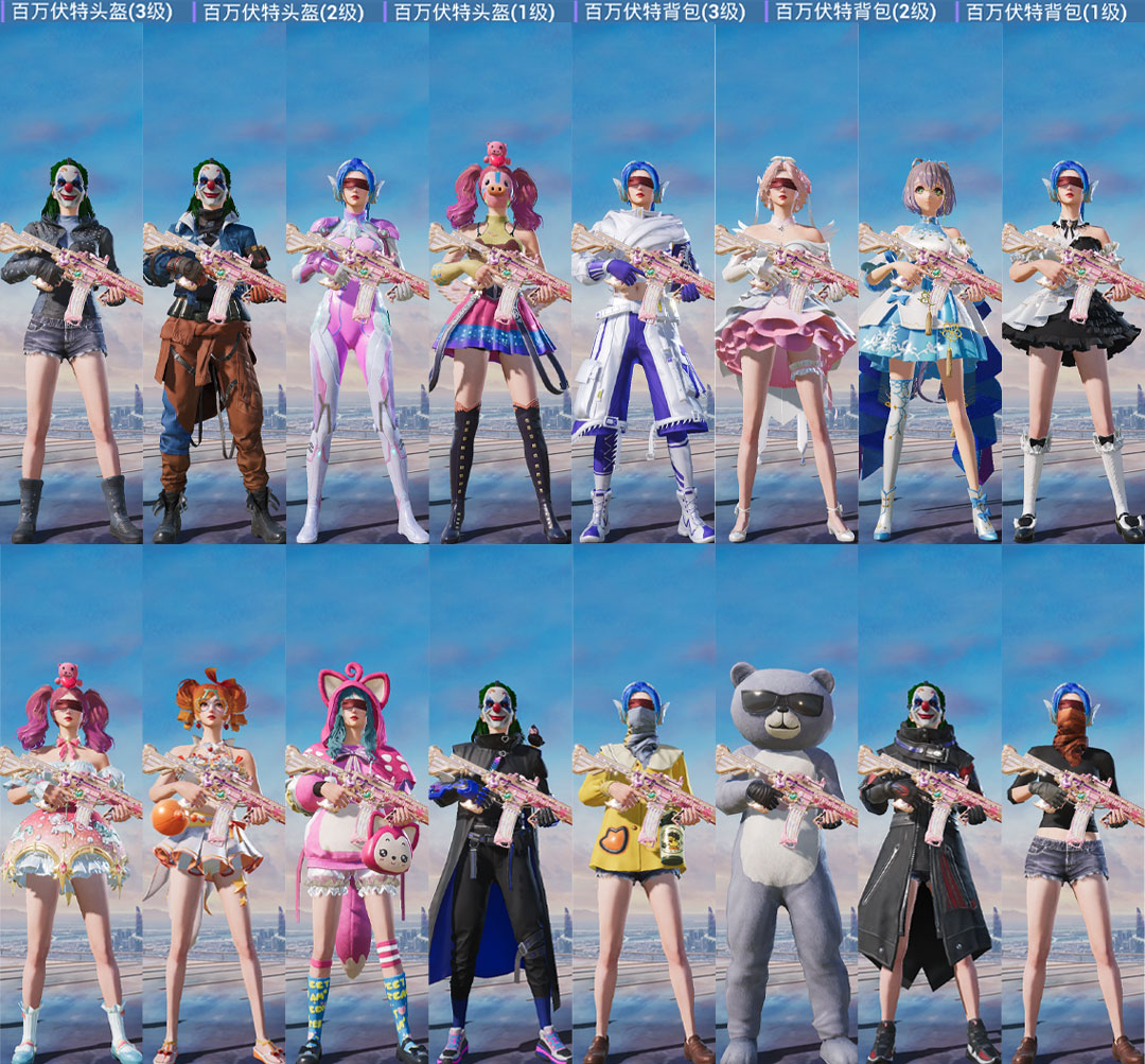 三级包:百万伏特1-3,小丑1-3,梦幻火箭1-3,缤纷油彩1-3,