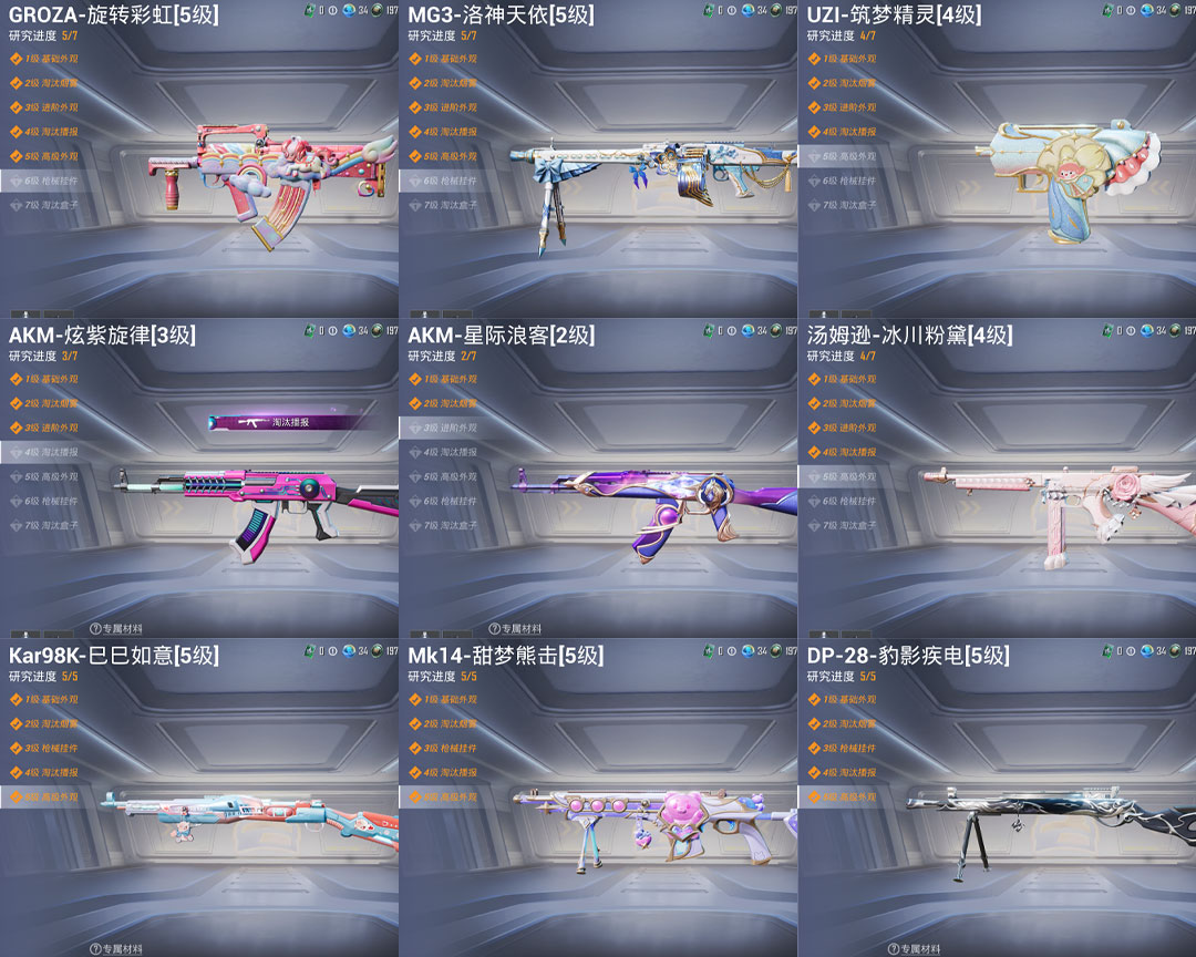 粉装15:梦幻火箭,怪诞乔克,缤纷油彩,新星烈龙,洛天依,炙焰赤龙,橘柚倾心,俏皮狐尾,冰川粉黛,冰川幽秘,冰川红玫,旋转彩虹,吟月归客,创世·救赎,数码大师