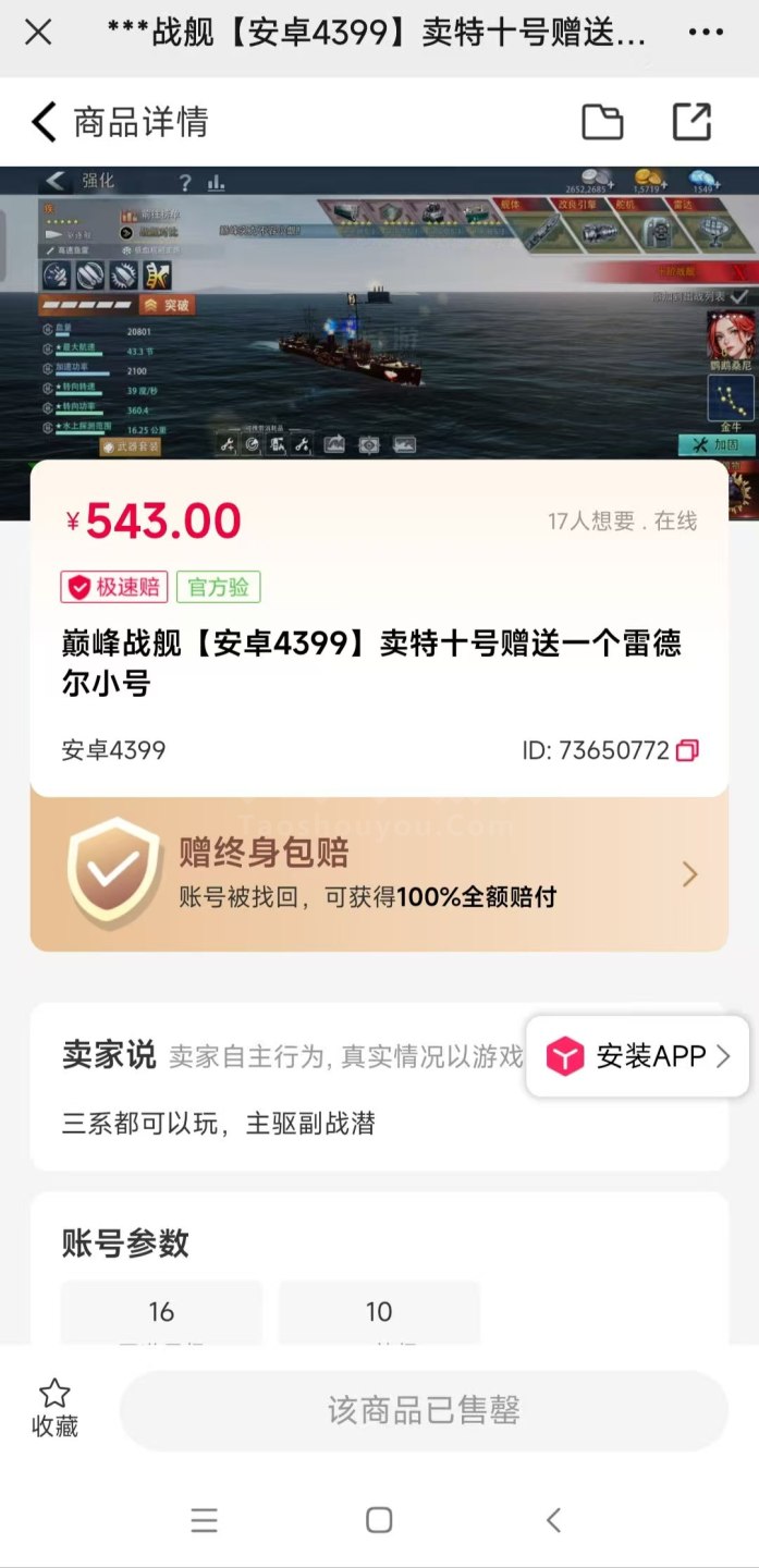 巅峰战舰【安卓4399】前几天500元买的,种花兔