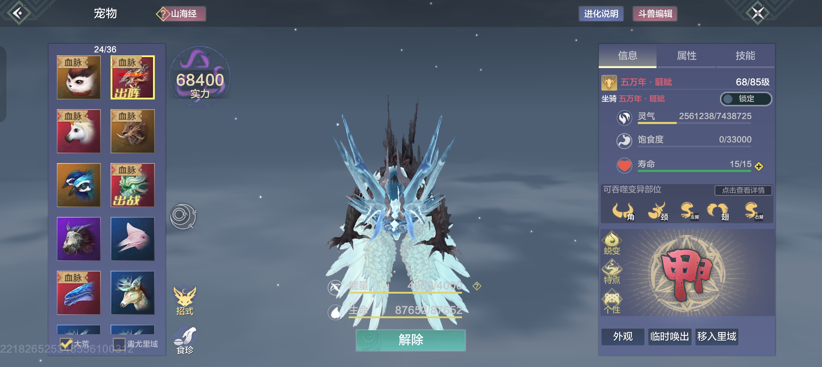 生活技能懒得肝了,暑假服没停过一天日常,三只神兽都是充钱买的已经花了一千多了,实在不会玩,你看我血脉就知道了