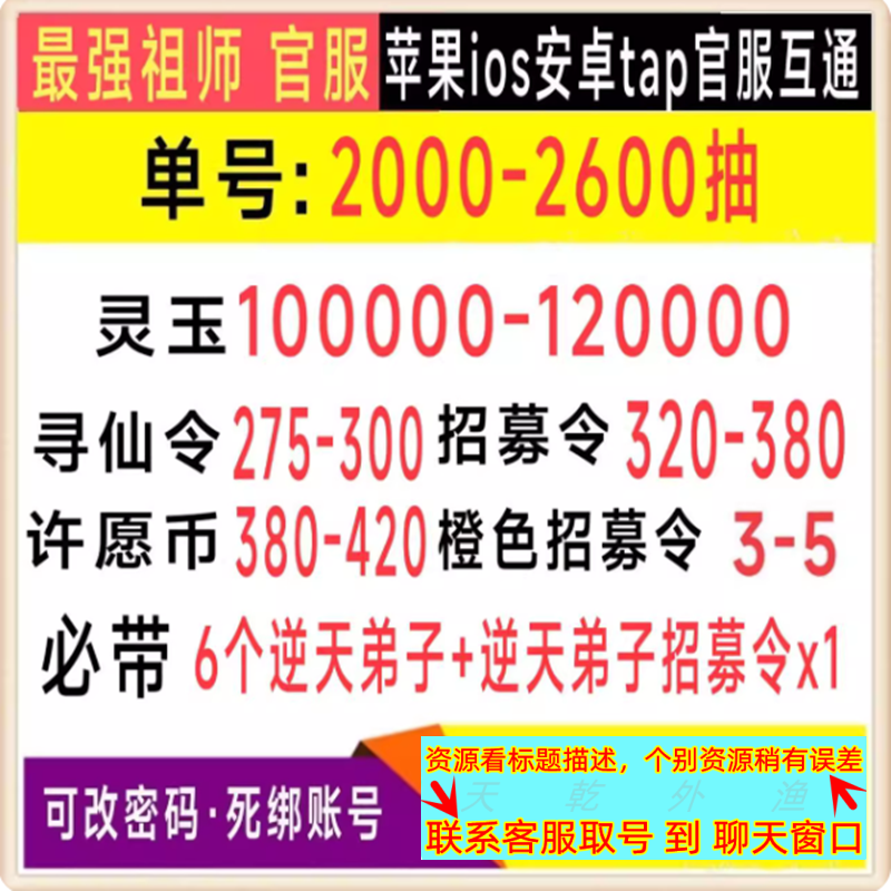 官服通用,逆天10个(必带 :至尊宝+紫霞+阿璃+狂生)1100+抽【5万玉+寻仙令280-300+招募令220-280+许愿币220】,可改密,不可换绑,随机老区,安卓taptap下载即可
