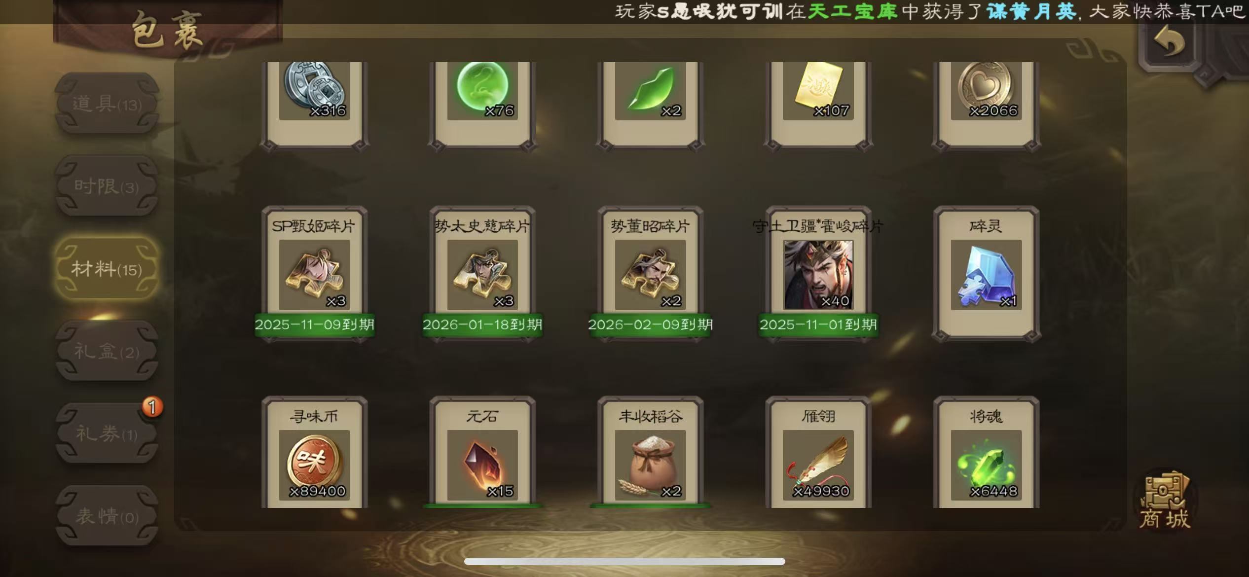 士兵76宝珠5万羽毛6500将魂110招募令三卡