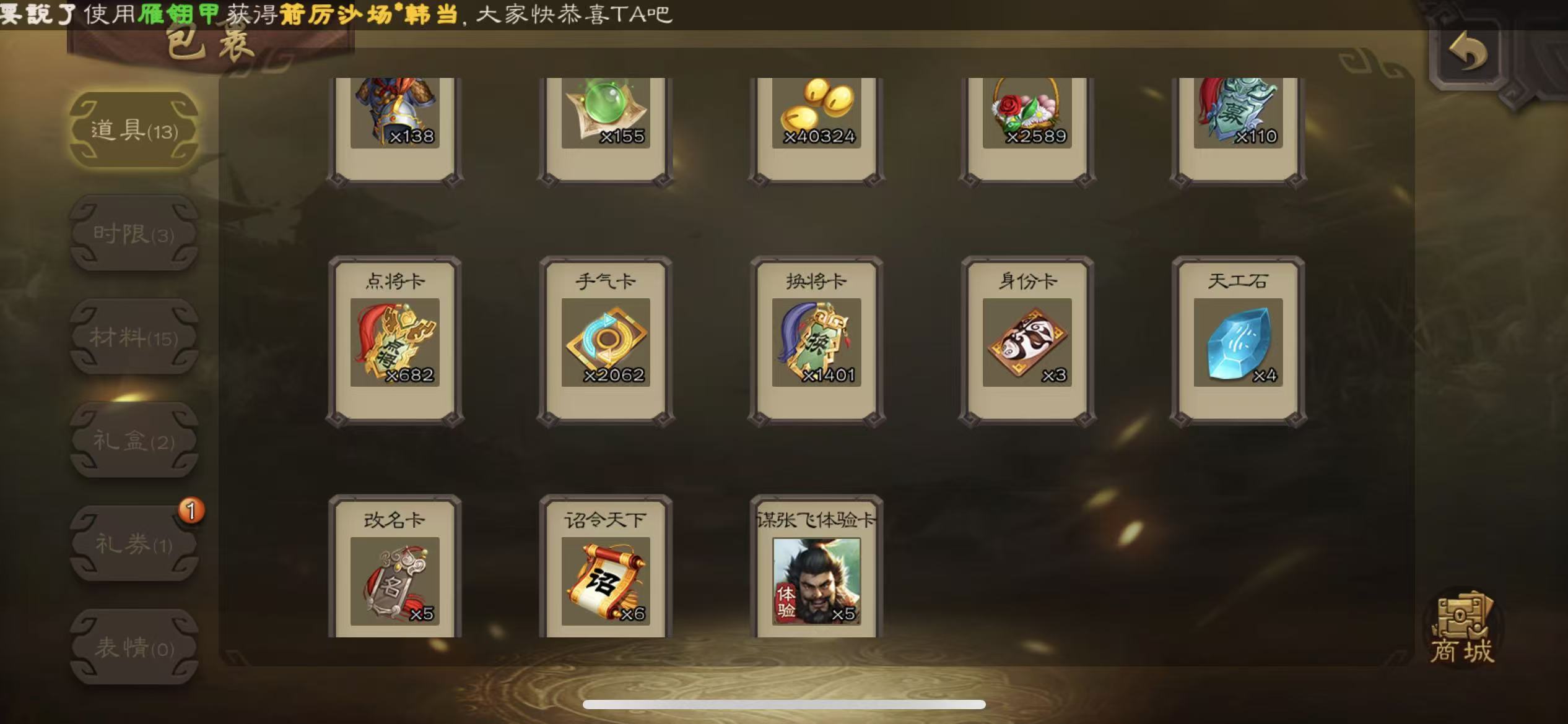 三国杀【安卓官方】士兵76宝珠5万羽毛6500将魂110招募令三卡