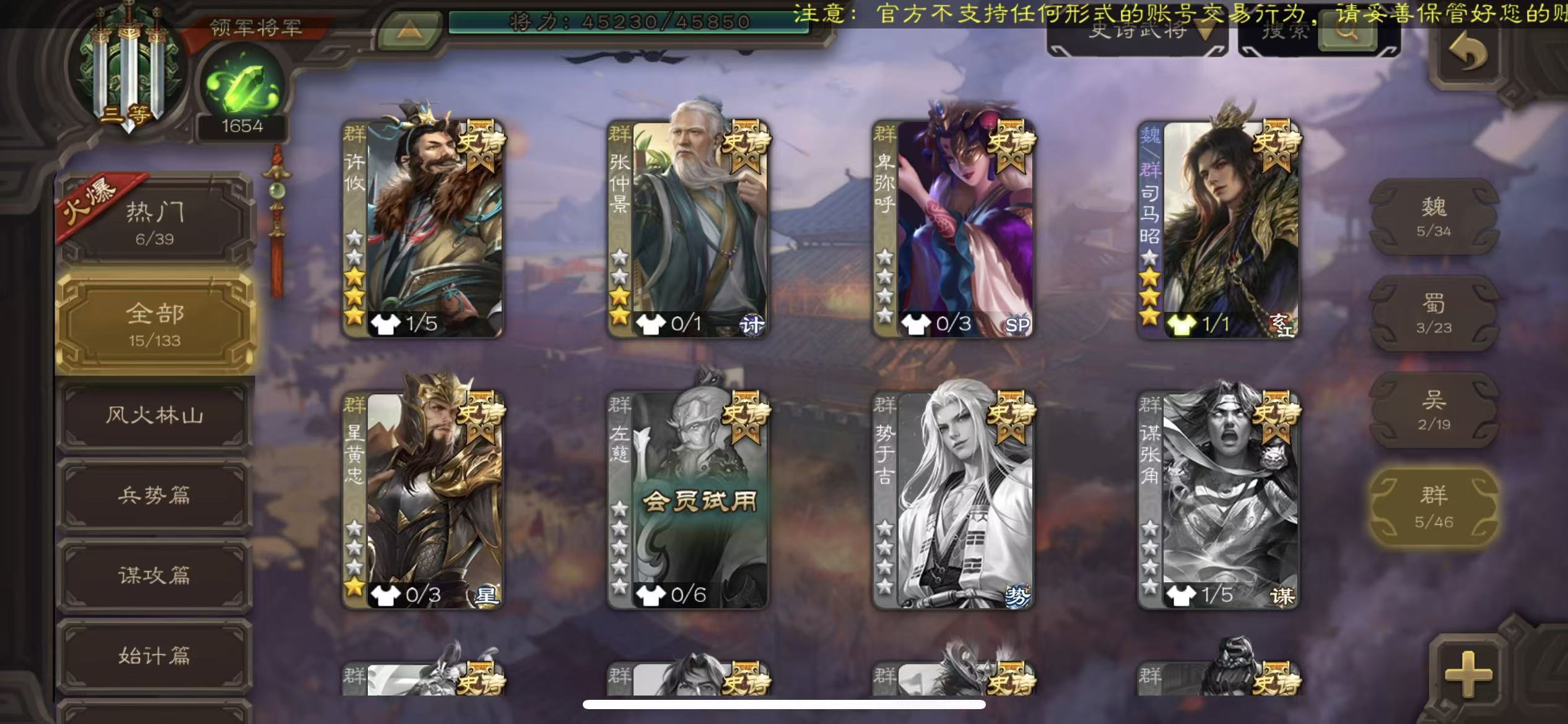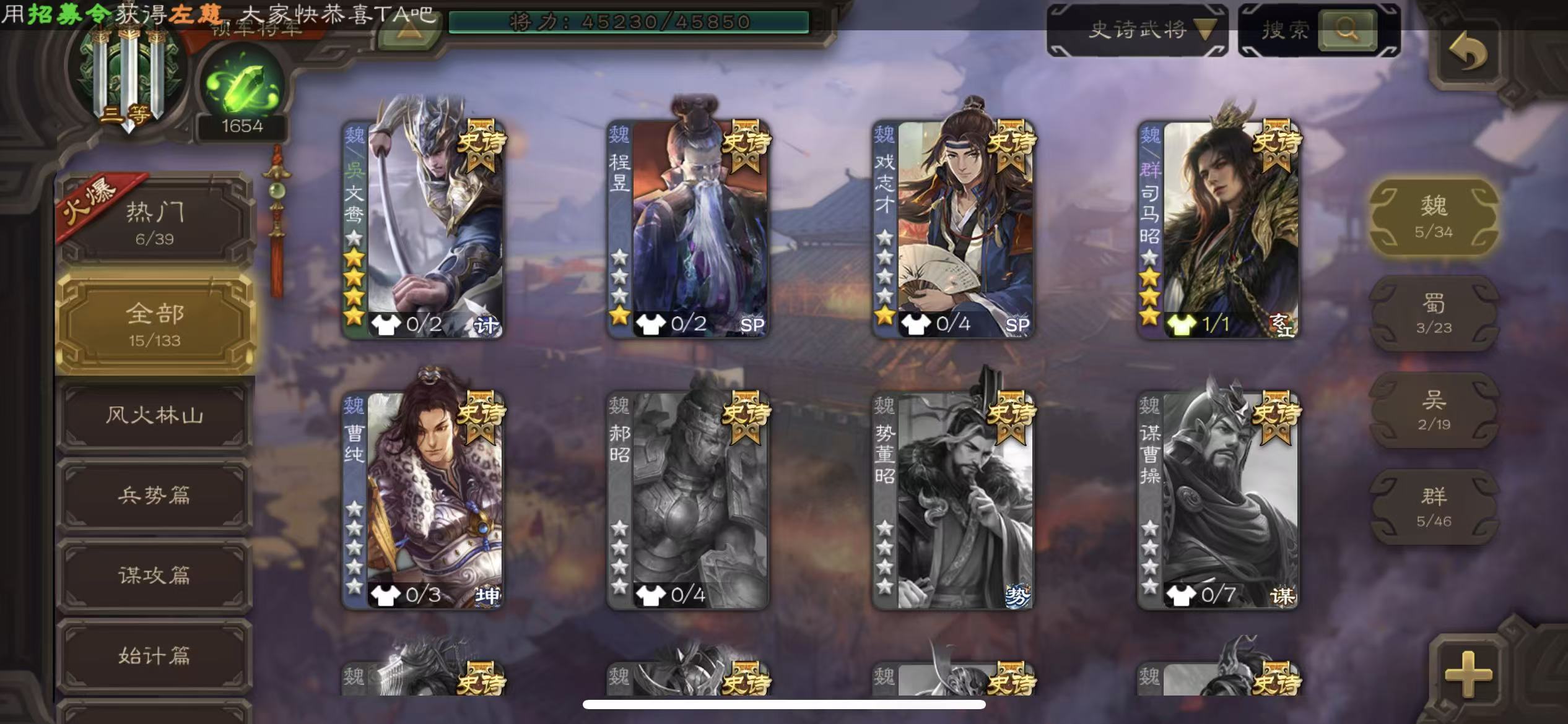 史诗武将数量: