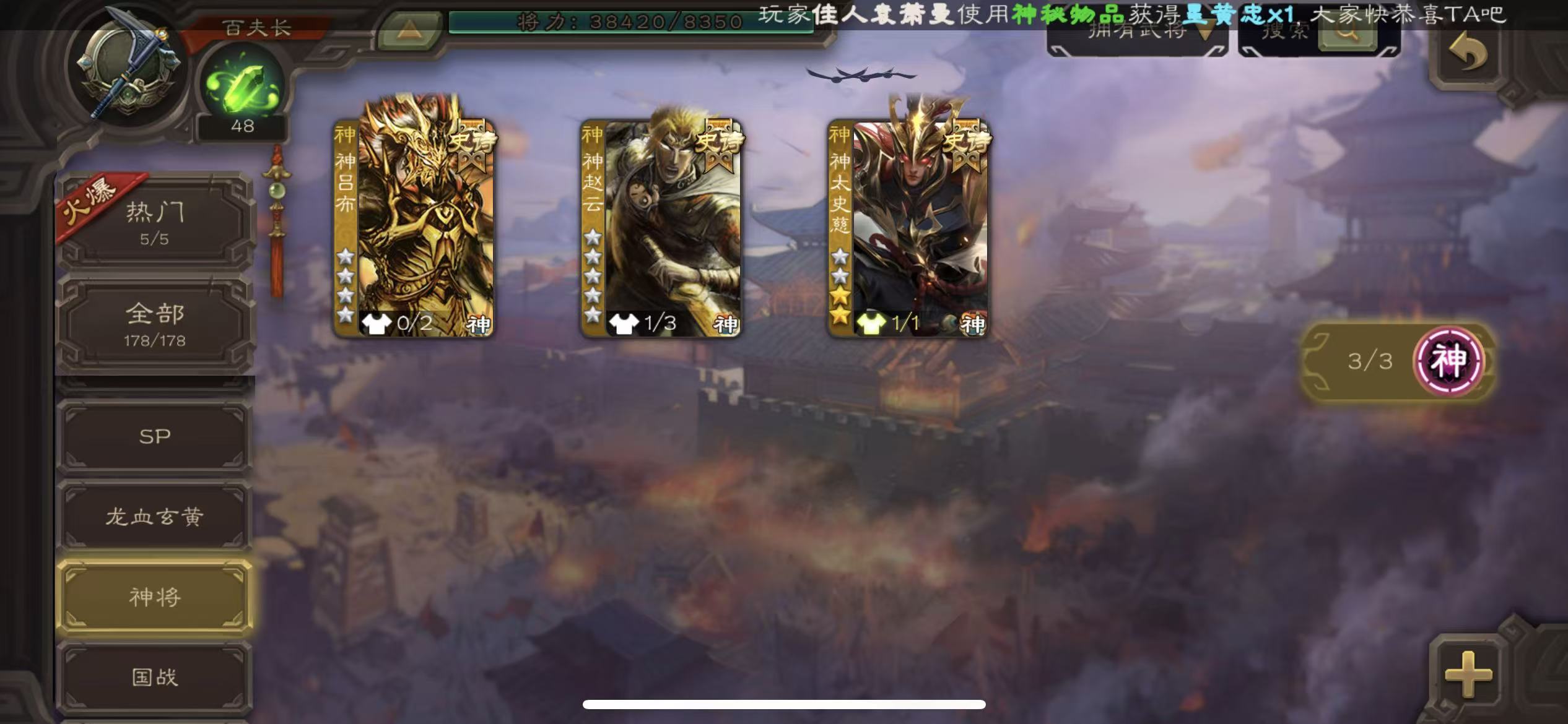百夫长动态神赵云动态界钟会动态神太史慈动态白马戏子花花谋赵云沙和尚张让神吕布三卡