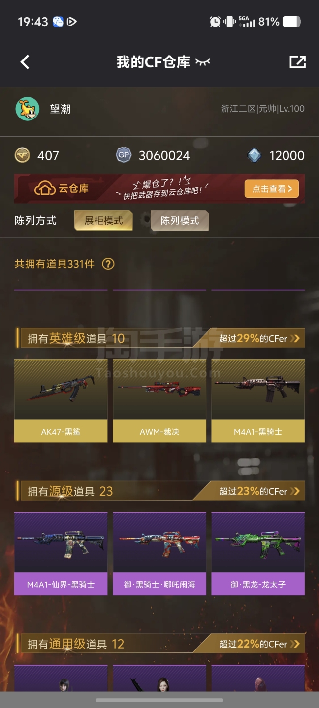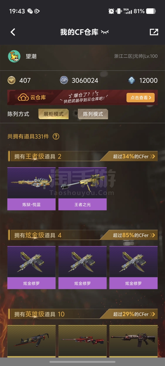 穿越火线(CF)【端游】浙江二区,10v 2王者 4炫金
