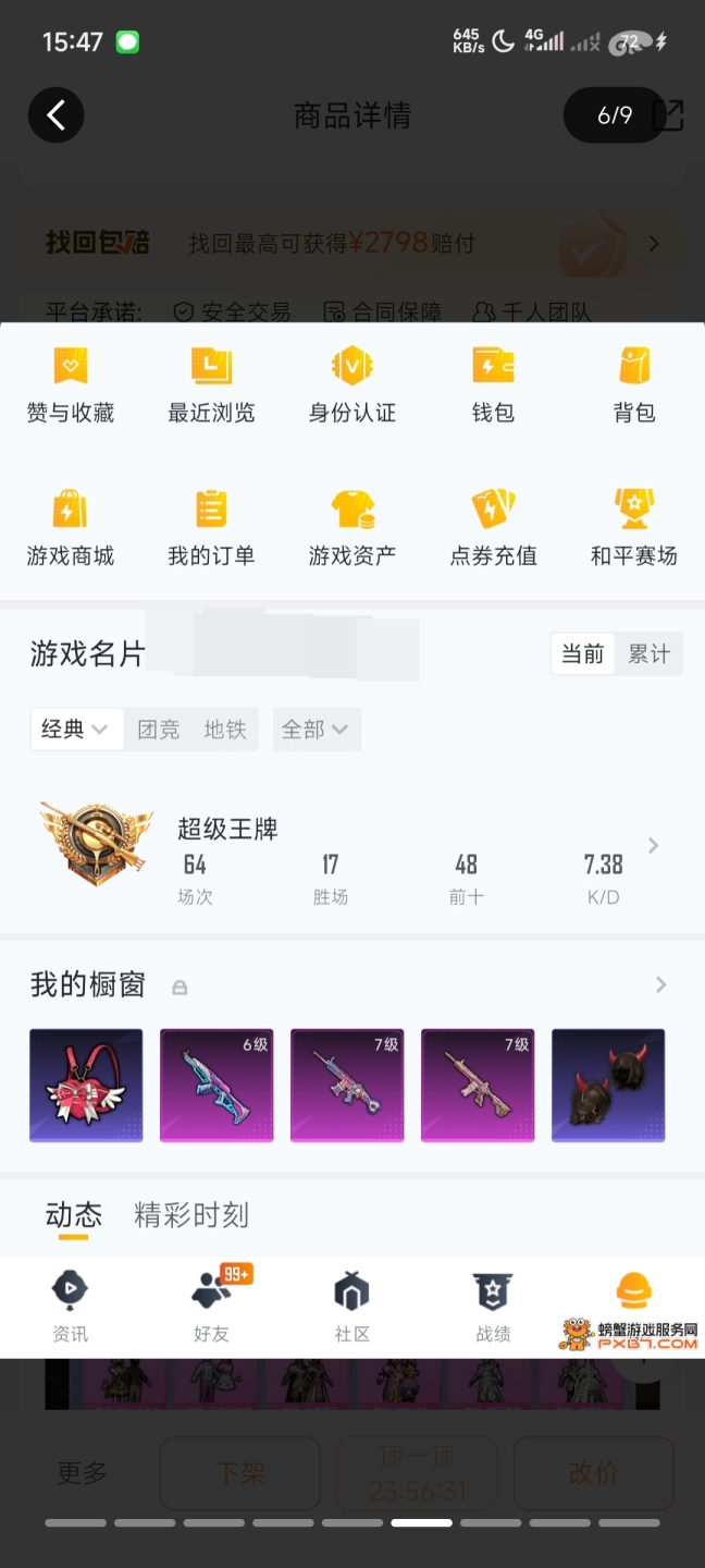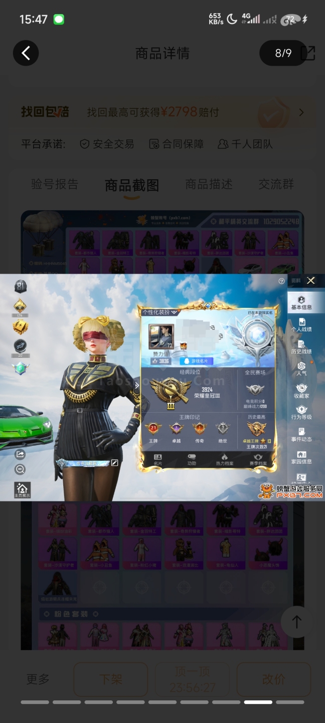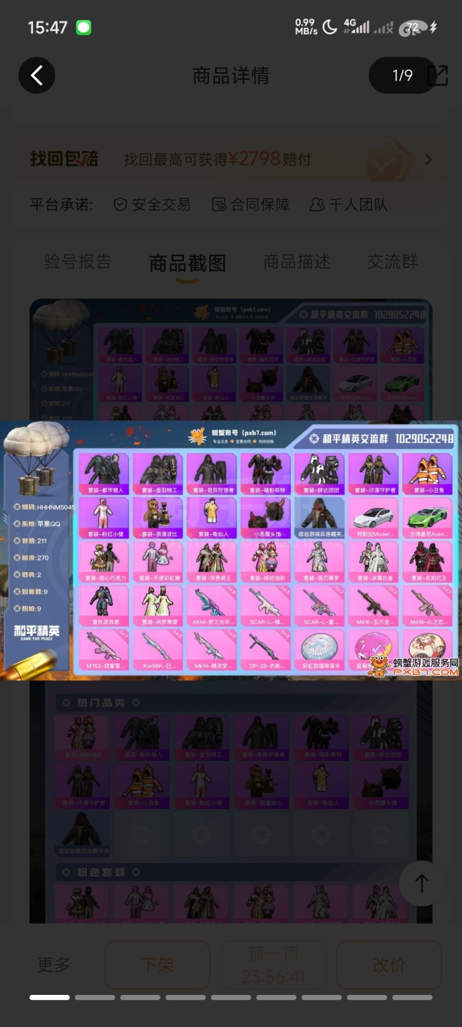 通过App,与卖家商议价格及保险,并向卖家索要账号最新截图,确认后下单购买。