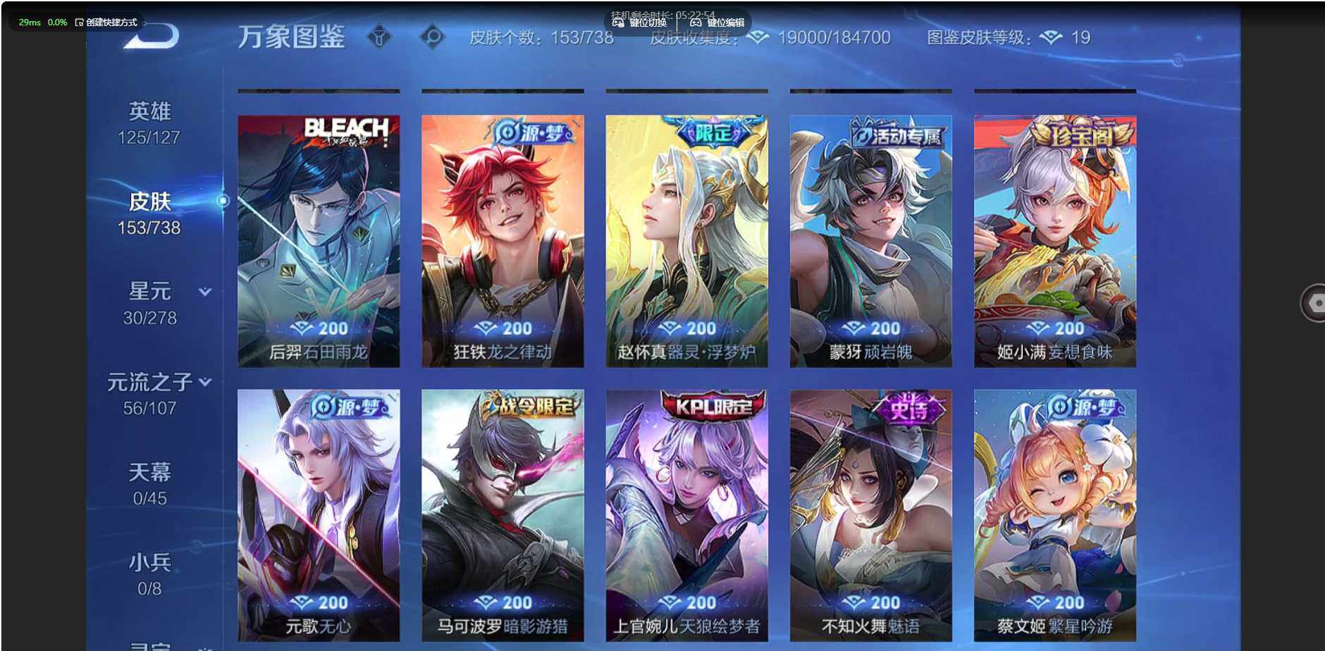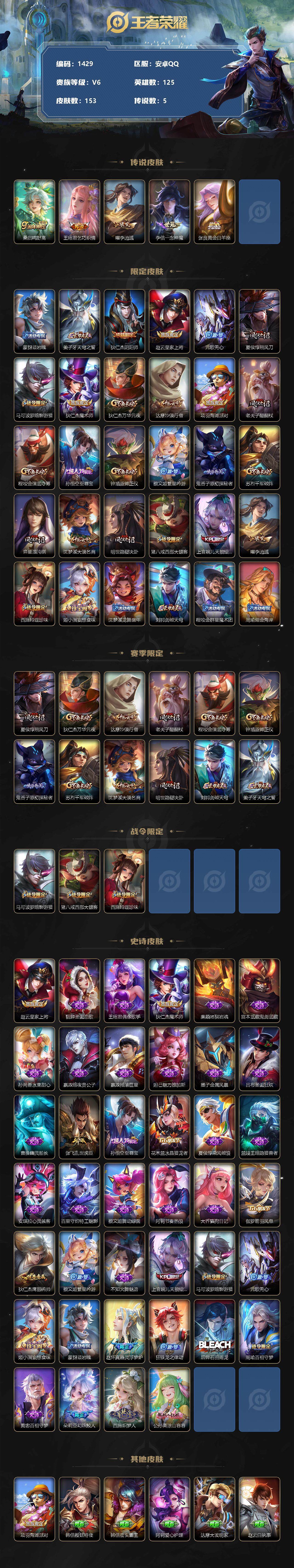 1429】【商品标题】秒换绑安卓Q-V6-至尊星耀II段位-125英雄-153皮肤-5传说-40史诗