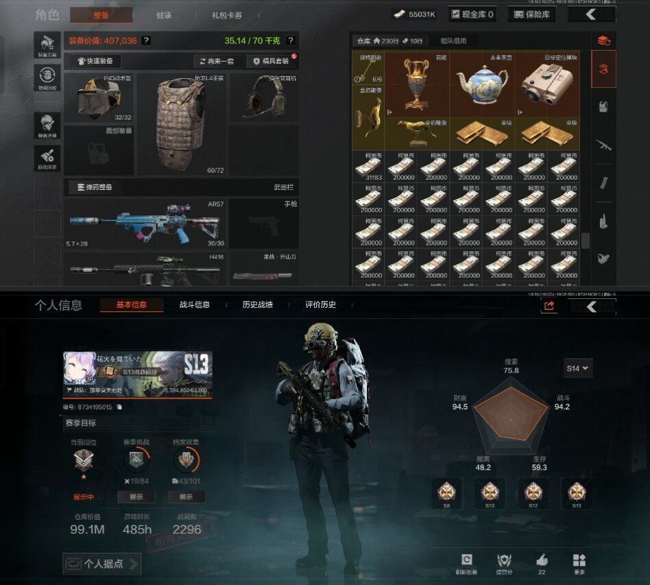 cd126三角洲水墨云图套 总资产125M 哈夫币13218K 12金枪 行动等级60 特勤4个满级 黄金鸟窝 仓库多大红 送安卓暗区仓库价值99M 科恩币55031K 4金枪可二次