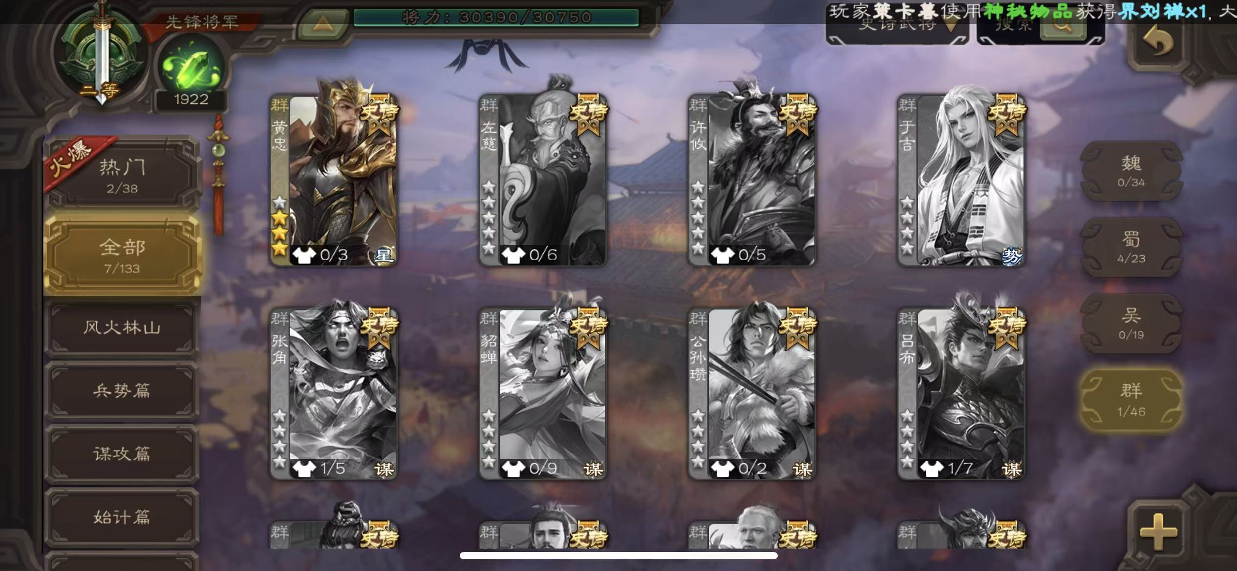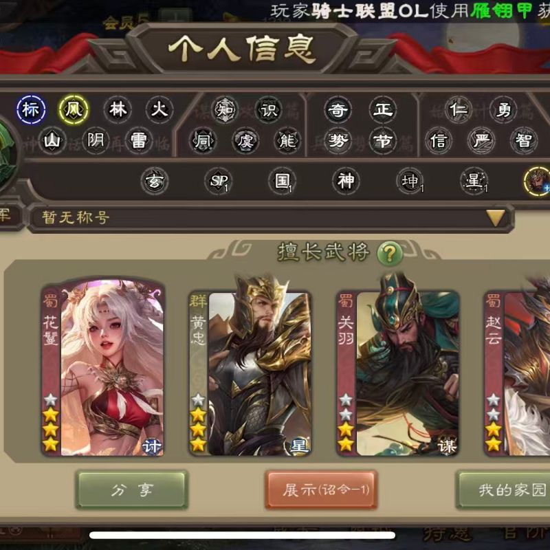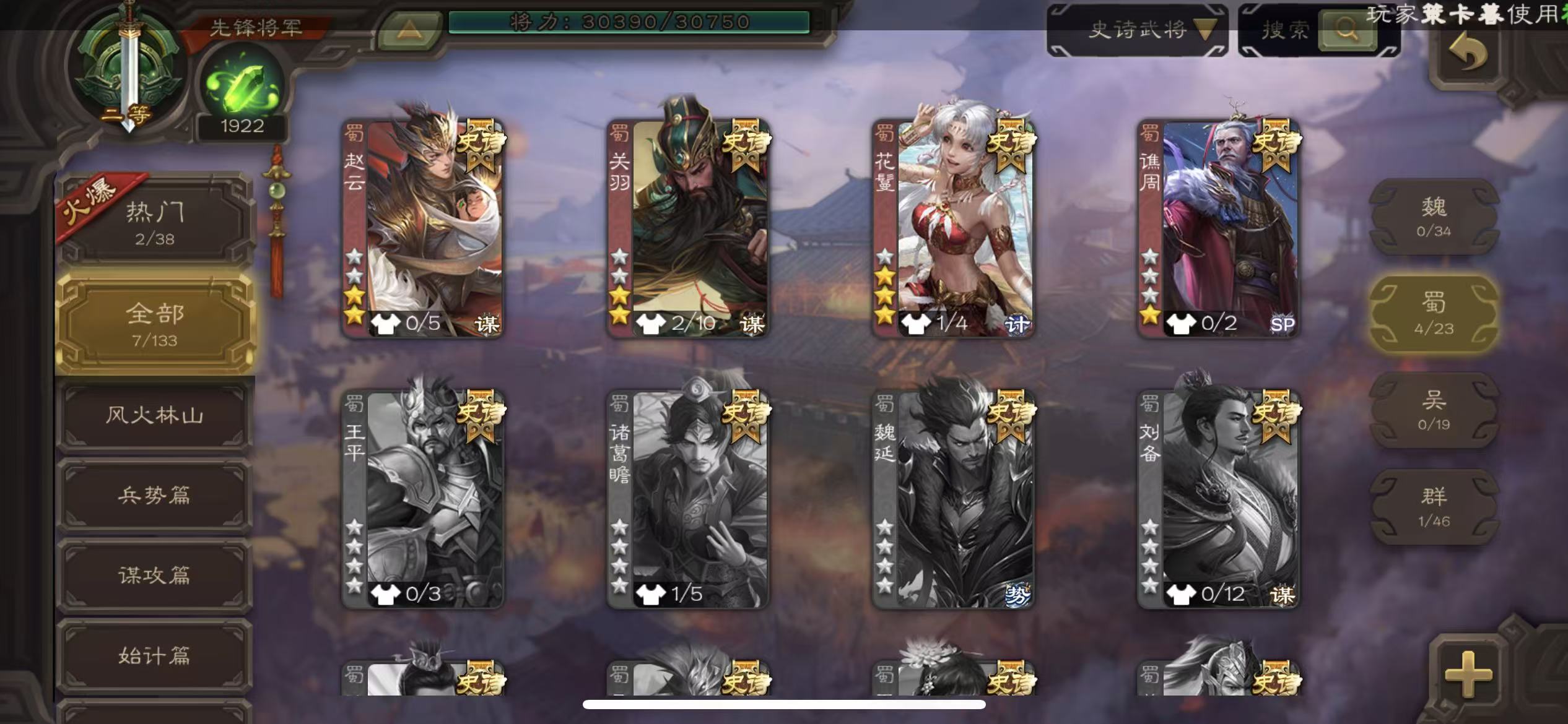 先锋神司马懿谋关羽动花花谋赵云星黄忠神赵云3.95万羽毛三卡