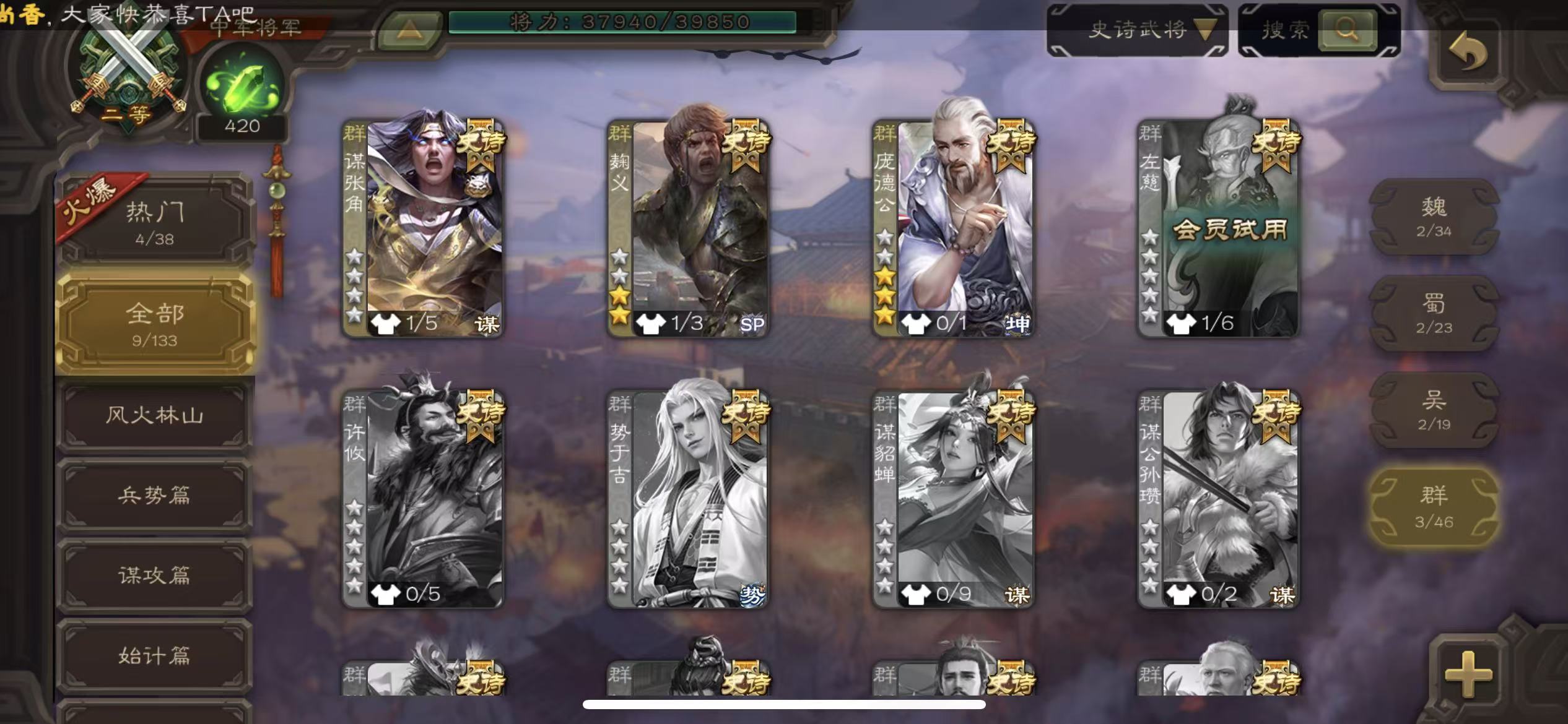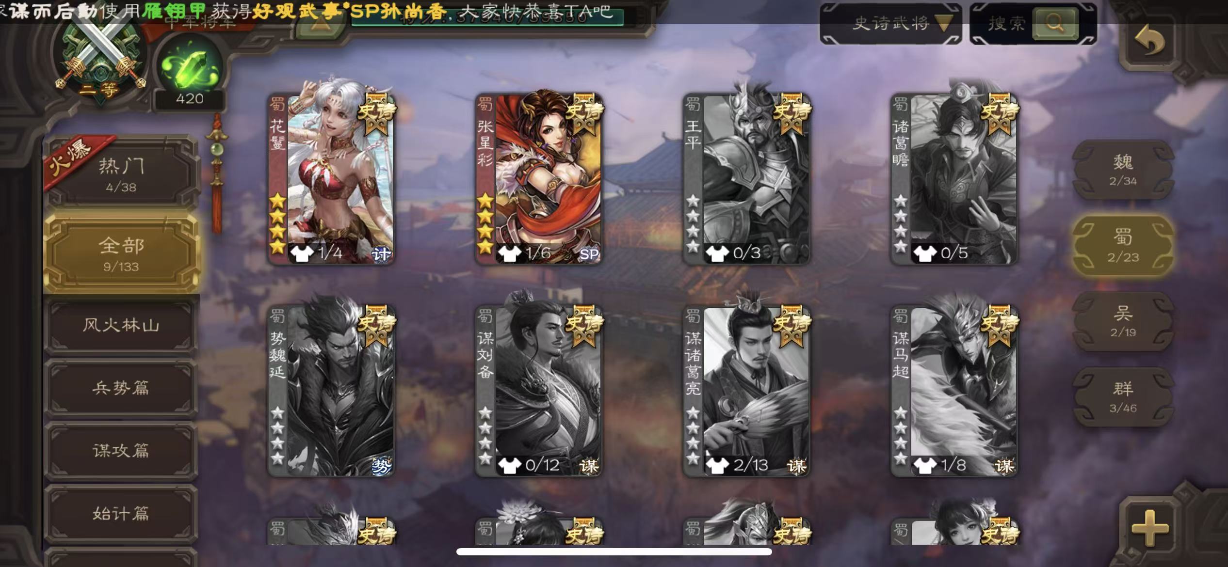 三国杀【安卓官方】中军动态留赞动态花花张星彩戏子白马庞德公三卡