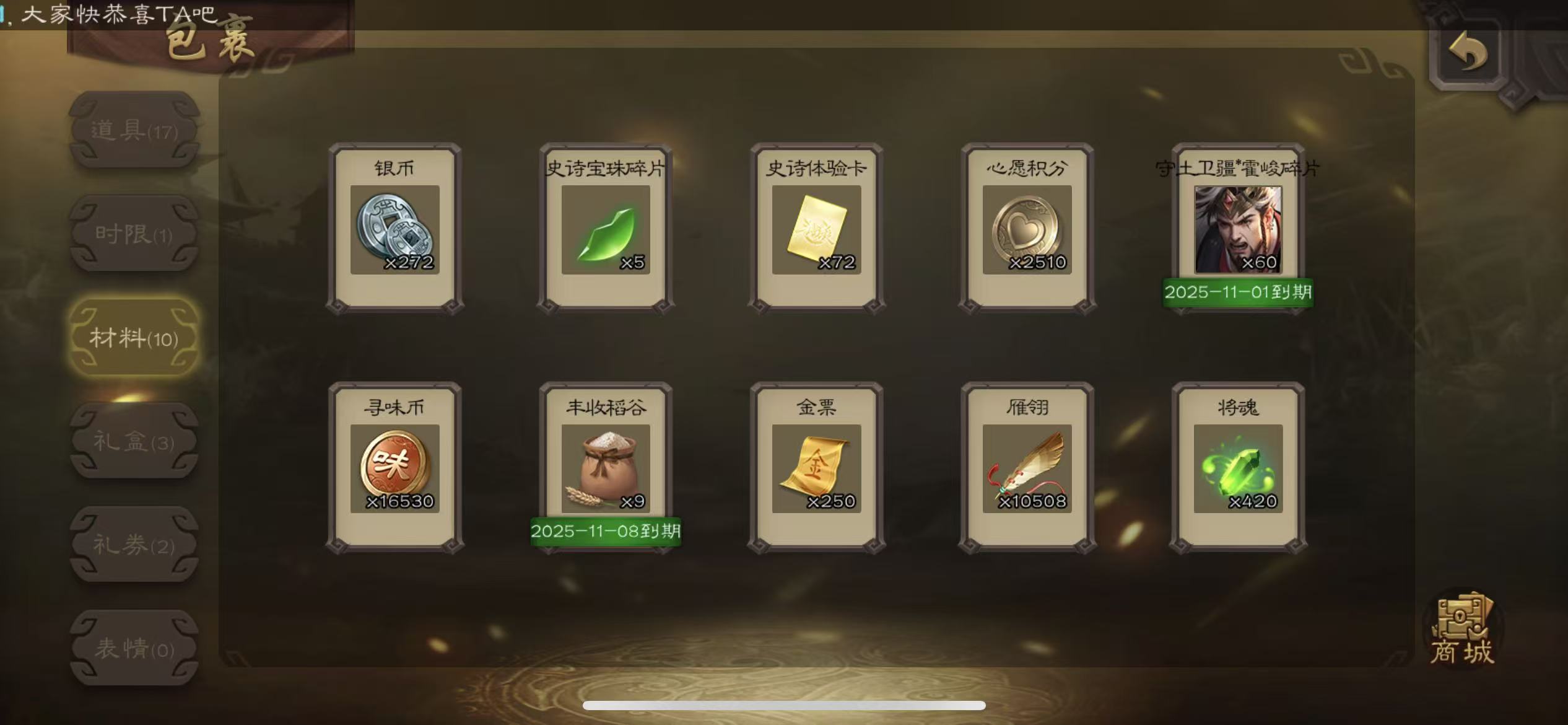 中军动态留赞动态花花张星彩戏子白马庞德公三卡