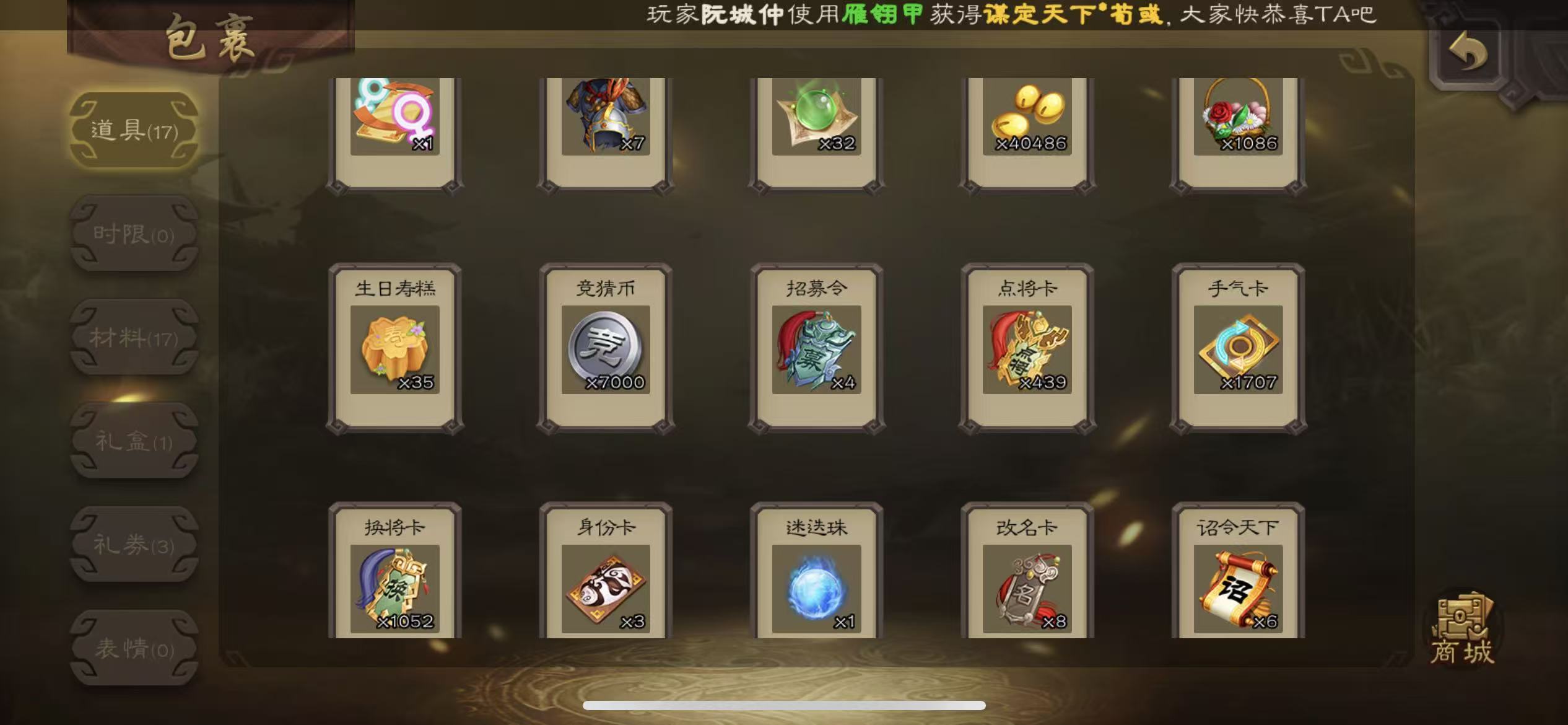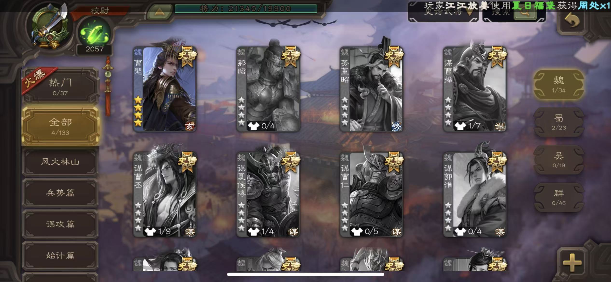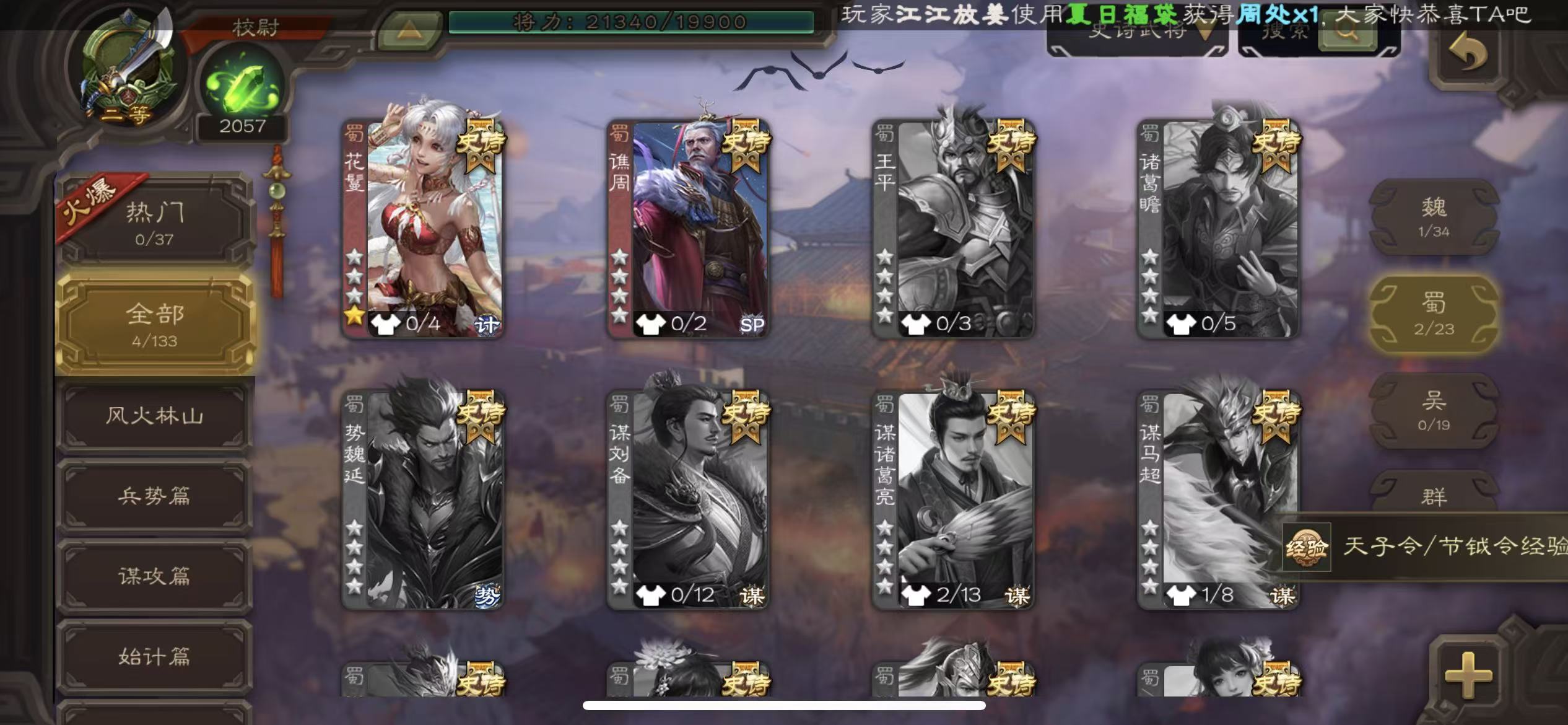 校尉曹髦神太史慈花花谯周三卡4000元宝