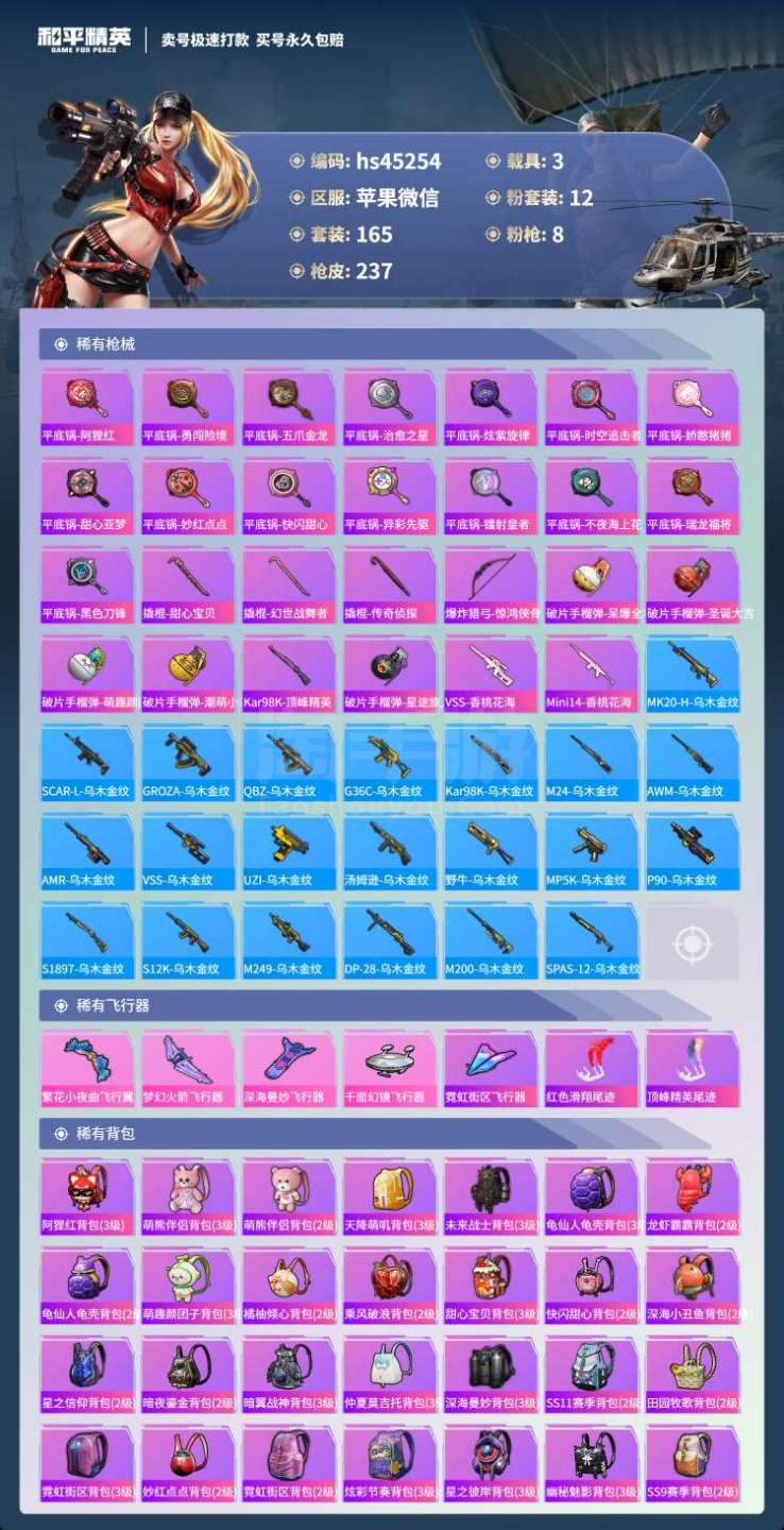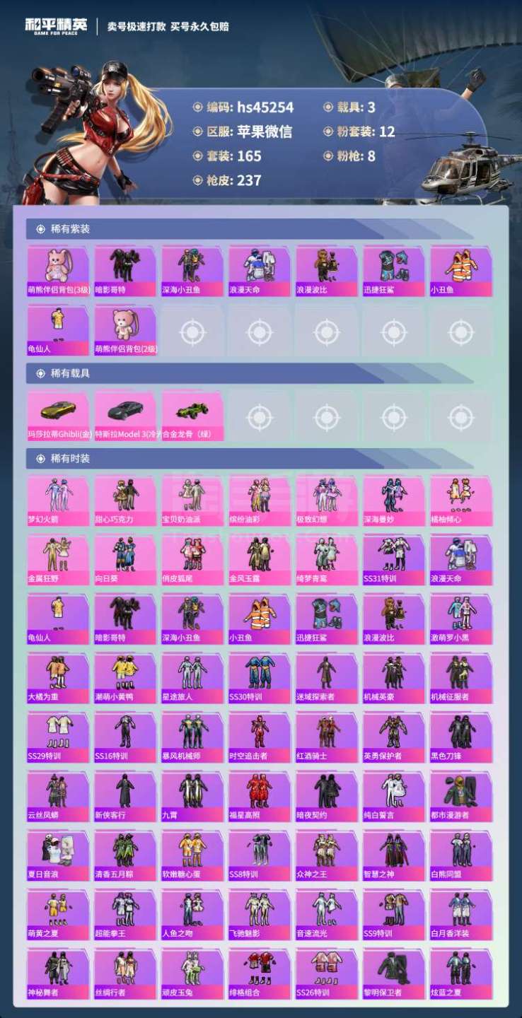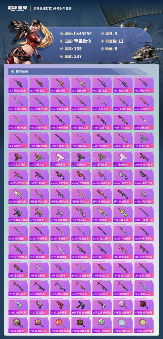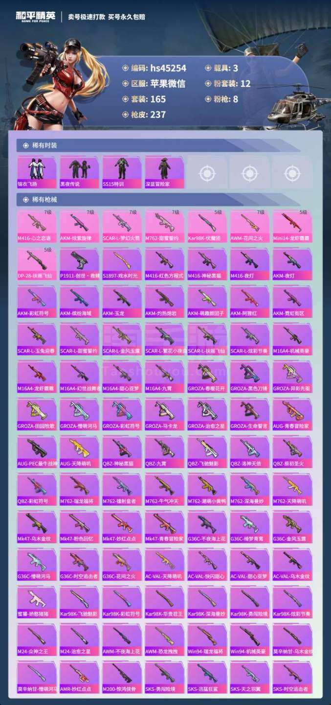 hs45254 苹果微-16王牌印记-12粉装-8特效枪-3载具-88875热力值-165套装-2
