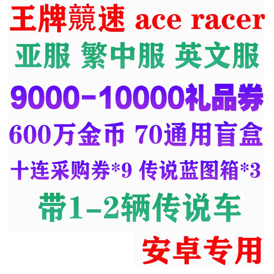 王牌竞速【全服通用】亚服  繁中服9000礼品点600万金币70通用盲盒